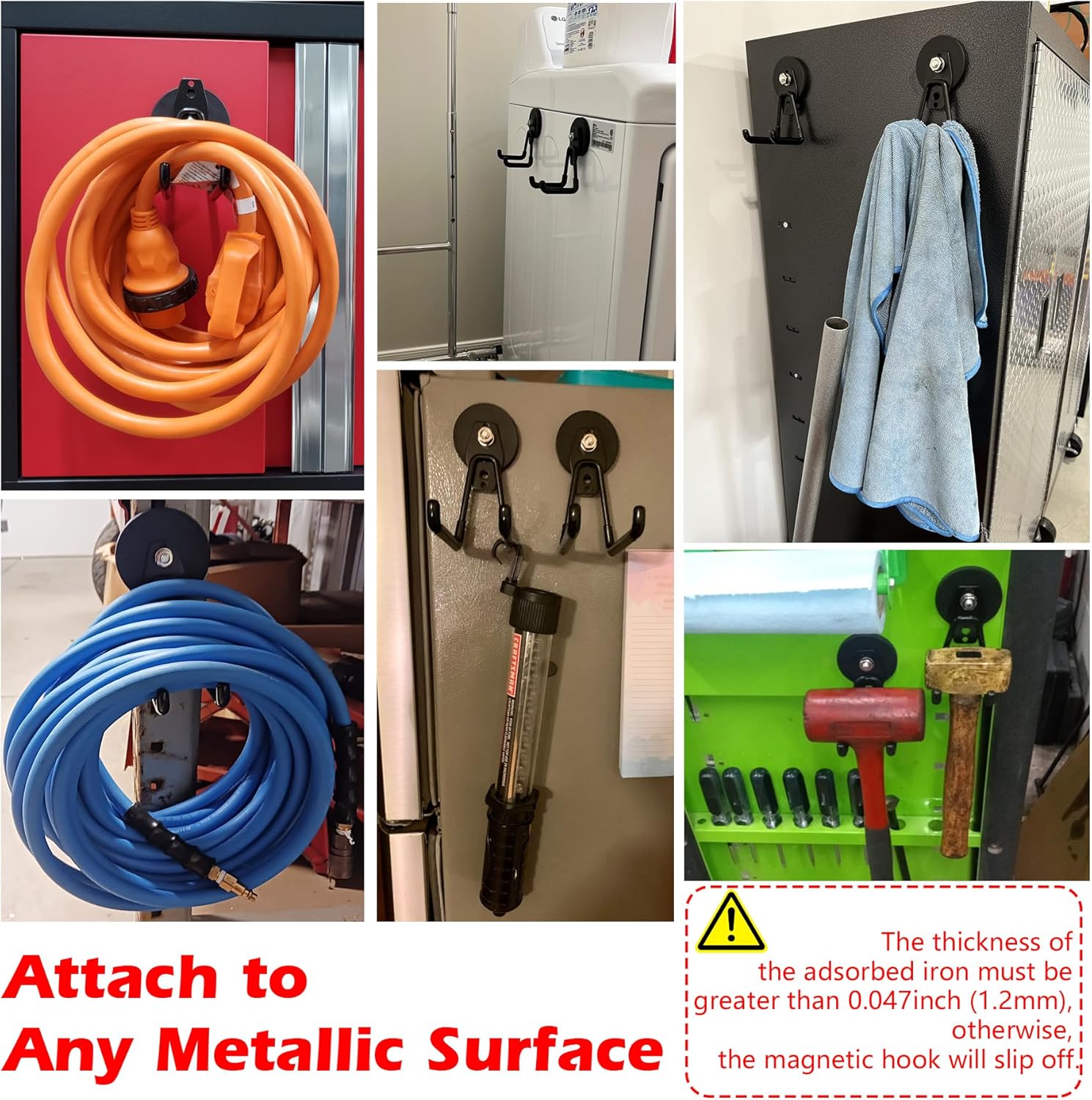 - [Versatile and Universal] Package including 4PCS magnetic hooks, can help to have a well-organized garage and storage that gives your garage, garden, shop, basement, and warehouse more space and provides a clean, spacious, and bright environment
