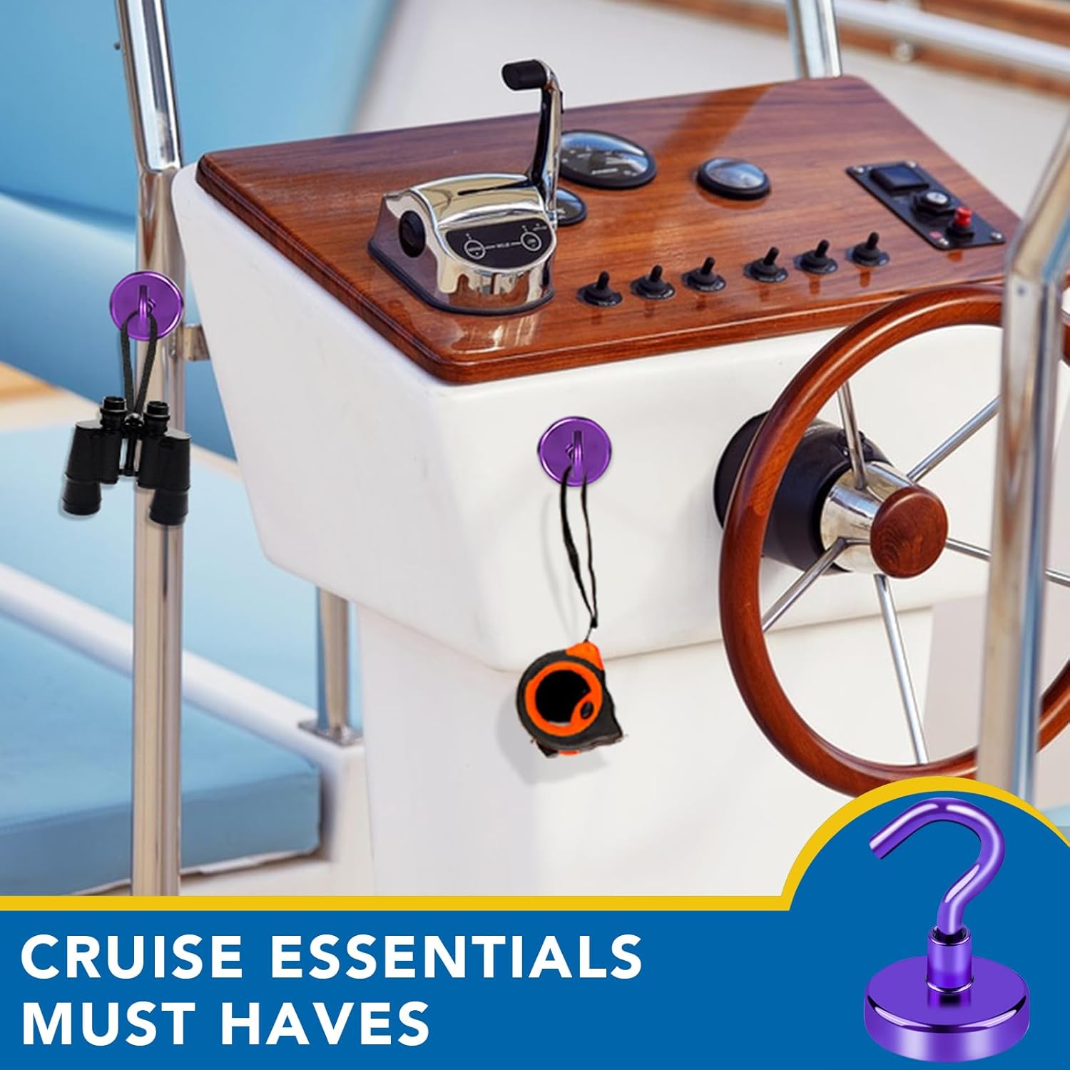 LOVIMAG Cruise Ship Essentials, 80Lb Magnetic Hooks for Cruise Cabins, Purple Strong Magnetic Hooks for Hanging, Refrigerator, Celling, Grill, Fridge, Kitchen-4Pack