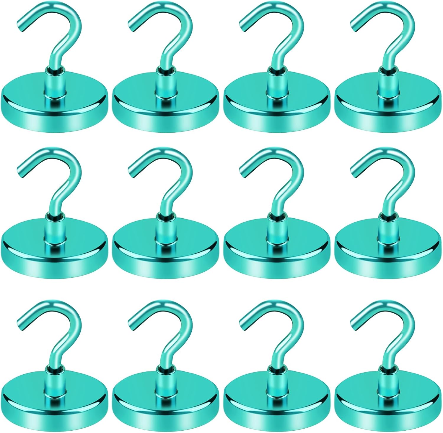 LOVIMAG Magnetic Hooks, 110lbs Capacity, Green Cruise Magnets, Key Holder, Strong Hanging Hooks - Fridge, Grill - 12 Pack