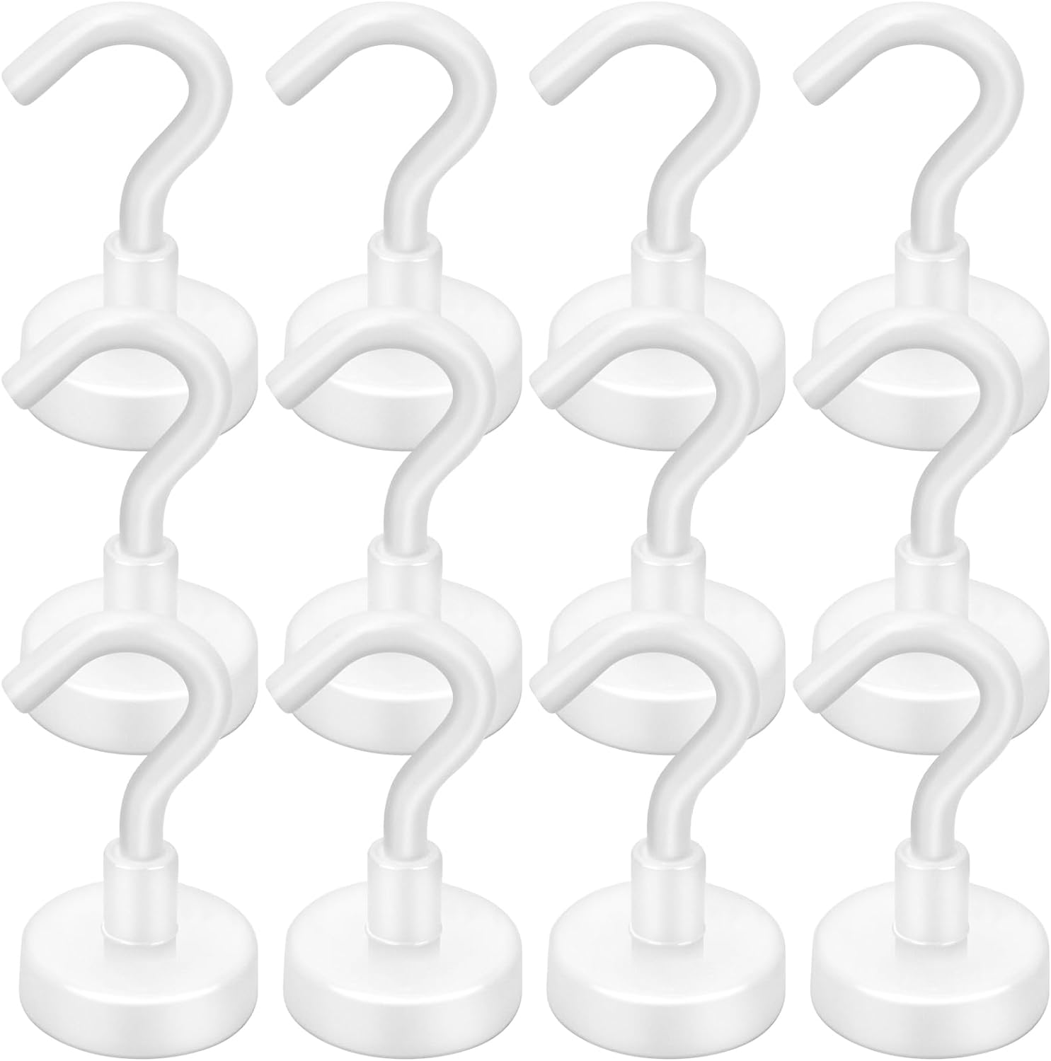 LOVIMAG Cruise Essentials - 28lbs Magnetic Hooks for Cabins, White Cruise Magnets for Door, Strong Magnetic Hooks for Hanging, Refrigerator, Ceiling, Grill - 12 Pack