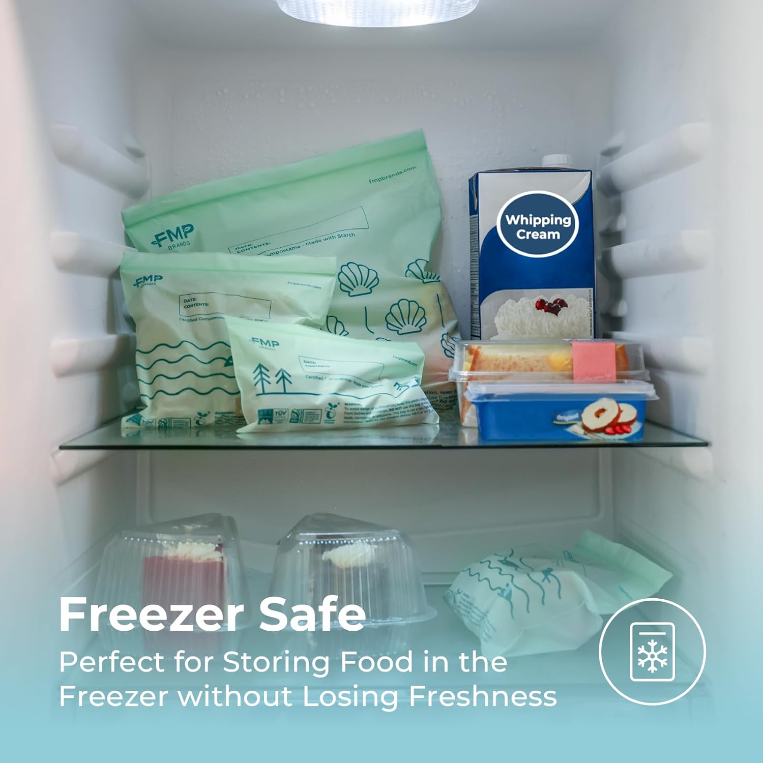 - Writable Bag Surface: Our compostable freezer bags various sizes have specially designated space for recording. Write details such as the contents, date, or notes. Ideal for meal, fruit, or snack preparation and children's lunches.