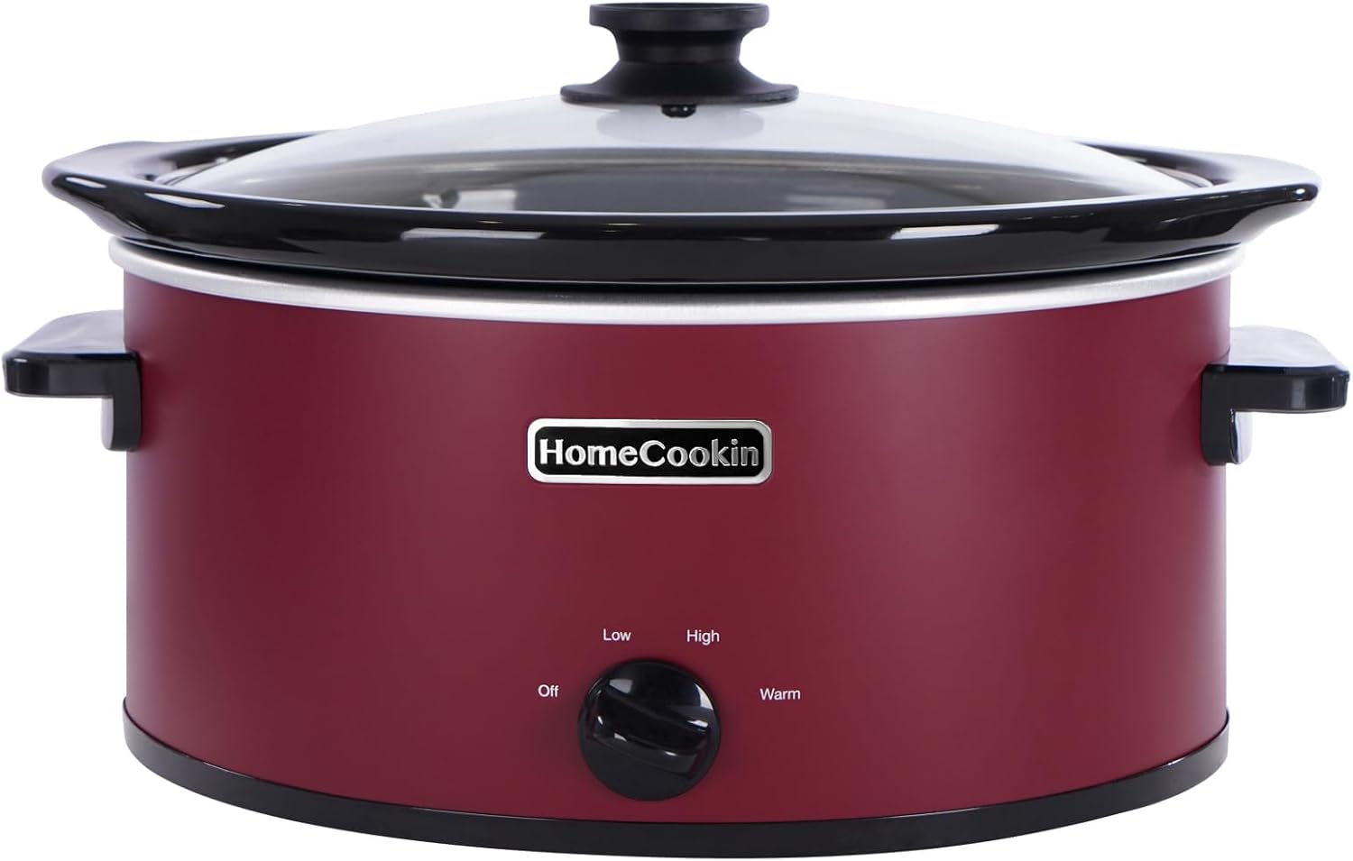HOMECOOKIN 8 Quart Slow Cooker Oval Manual Pot Food Warmer with 3 Cooking Settings, Red Stainless Steel