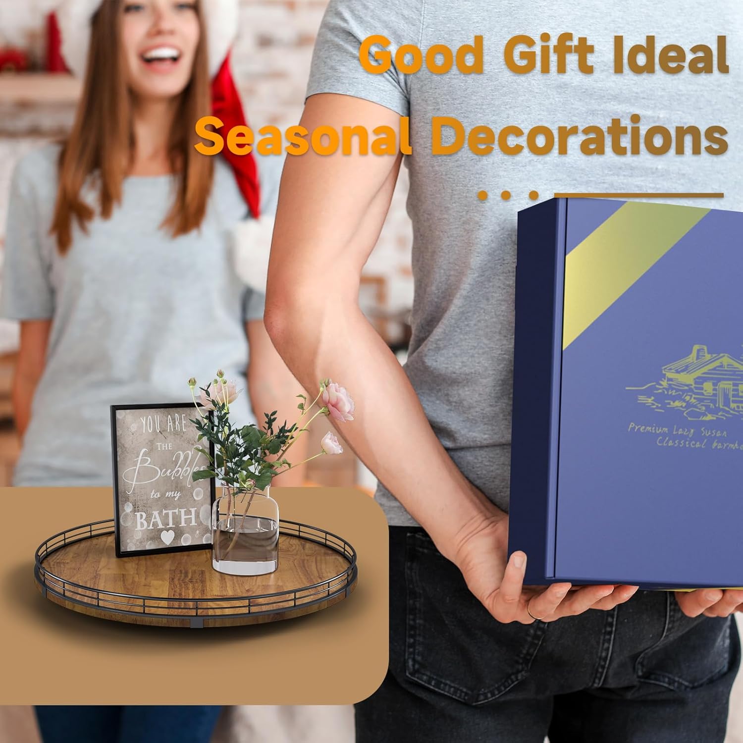 Farmhouse Oak 18" Lazy Susan Turntable Organizer for Cabinet, Round Wooden Lazy Susan Organization and Storage for Dining Table, Pantry, Kitchen, Countertop, Cupboard,Home Decor, Walnut Wood (18")