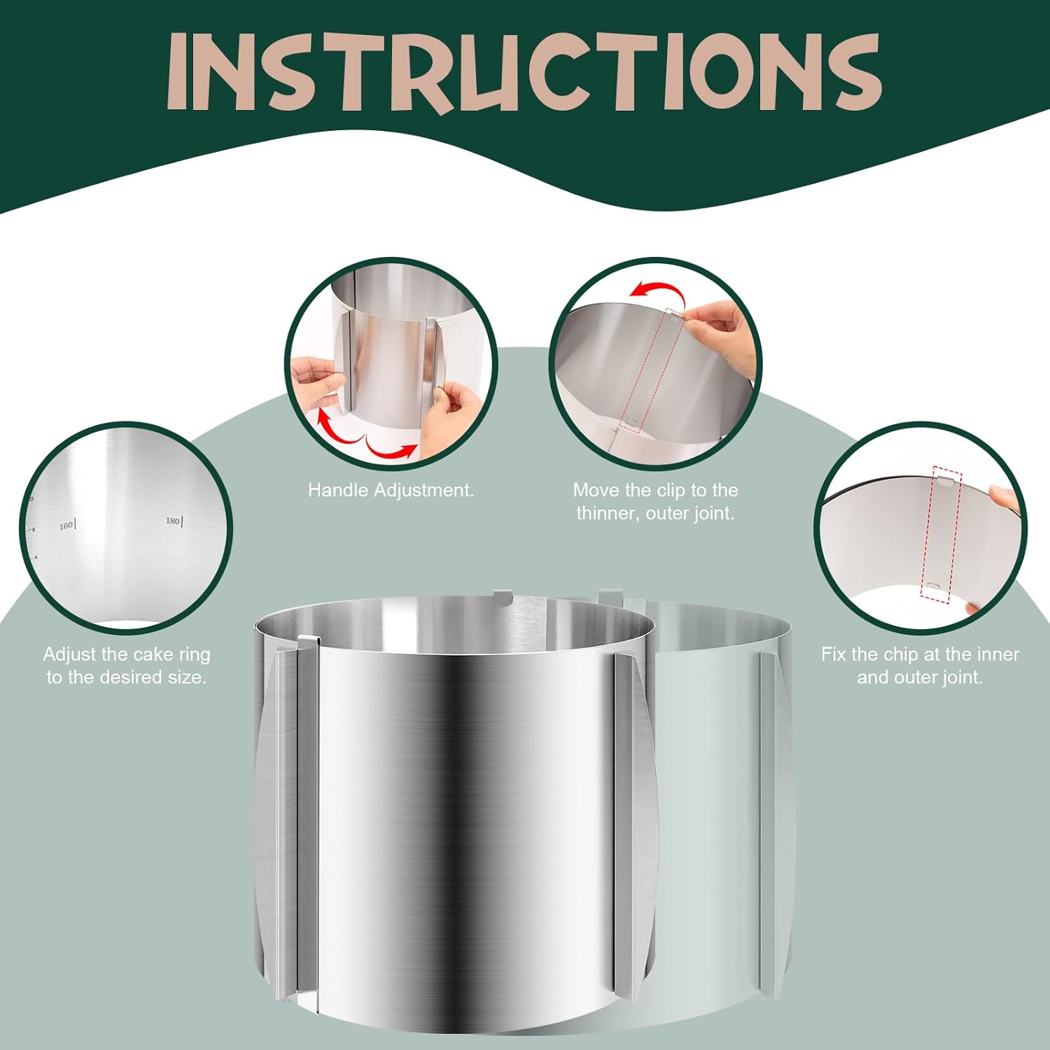 - 【Adjustable size】 This cake mold adjusts from 6 inches to 12 inches and has a height of 5.91 inches(15cm) with graduated markings on the interior. This versatile size gives it the flexibility to create different sizes of pastries, from cupcakes to full-size birthday cakes.