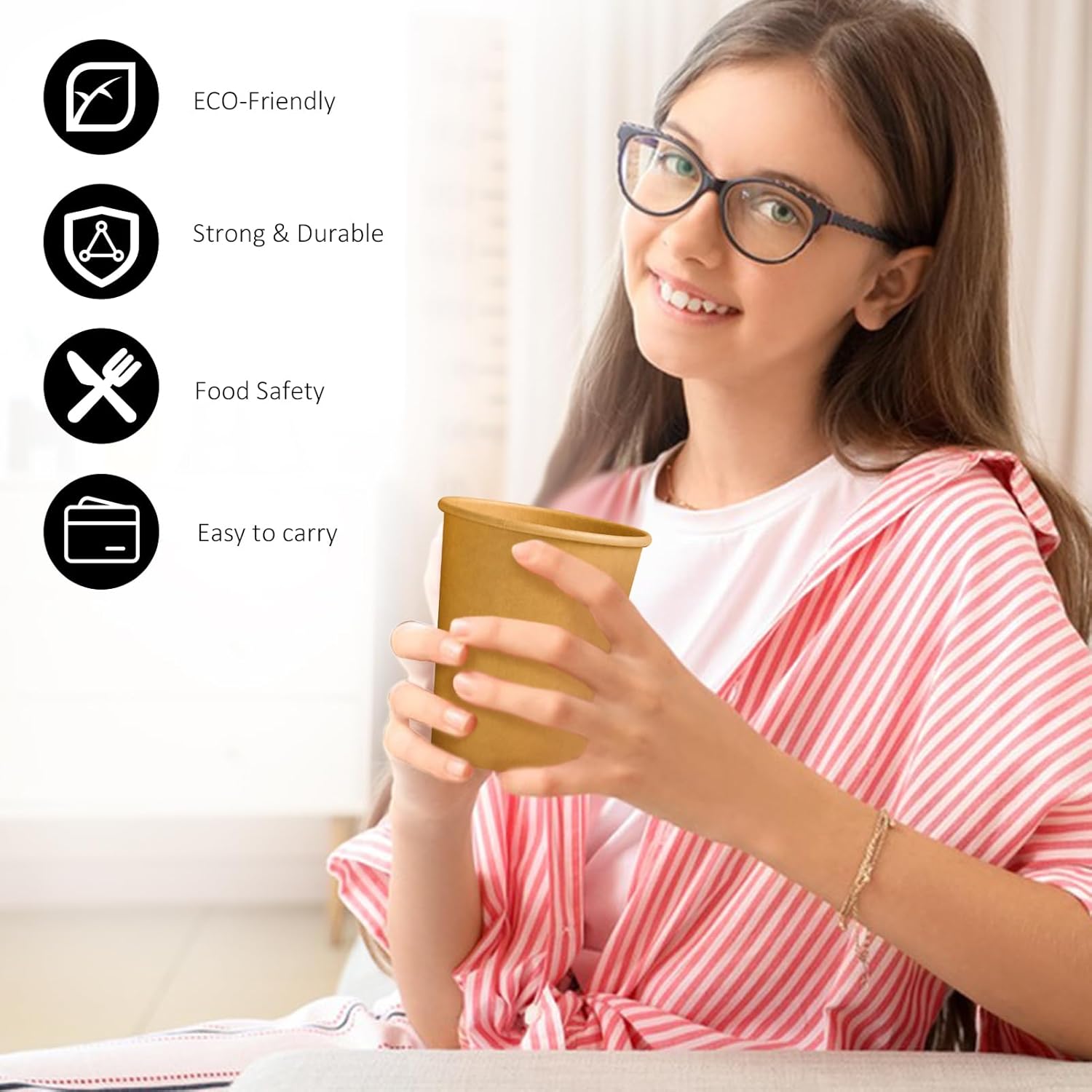 180 Pack 8 oz Paper Cups, Brown Kraft Disposable Paper Coffee Cups, Unbleached Paper Cups for Hot/Cold Beverage Party, Picnic, Travel, and Events.
