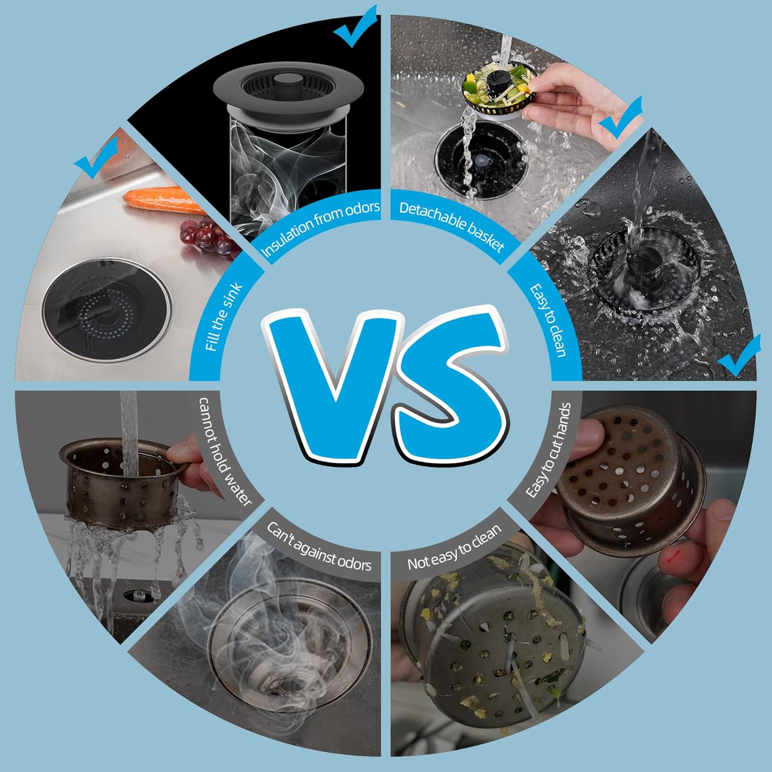 - 【Invovative 3-in-1 Functionality】The sink strainer is a versatile 3-in-1 tool that doubles as a water reservoir, a strainer, and an smell barrier. With its multi-layer sealing gaskets, it not only prevents leaks but also encapsulates smell from the kitchen drain. Whether you're washing dishes, filling the sink, or keeping food debris from clogging the drain, this innovative accessory offers comprehensive functionality for all your kitchen needs