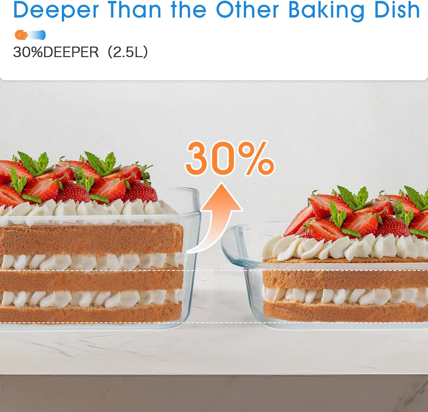 NUTRIUPS 2.6QT Square Glass Baking Dish with Lid, 8×8 inches Deep Square Baking Dish with Lid, Glass Baking Dishes for Oven