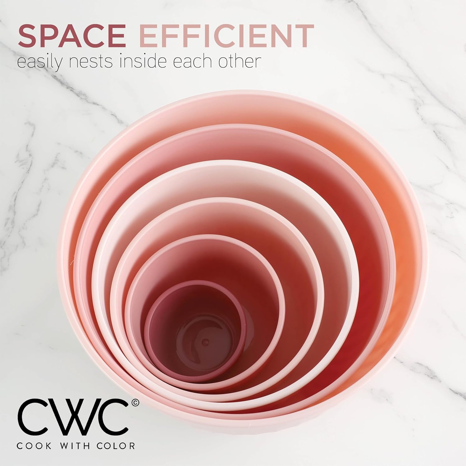 - Nesting Bowls and Sturdy Lids for Easy Stacking - Our ombre colored bowl set nests for easy storage and convenience, a functional set that saves you space. The strong lids allow for staking in the fridge and freezer, and the clear top allows for easy visibility.