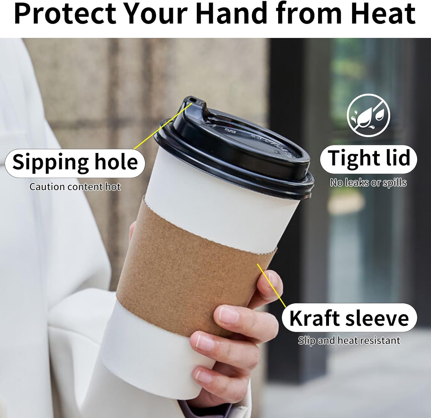 - Superior Leak-Proof Design: These to-go coffee cups are made of thick and sturdy paper material, making them incredibly durable and leak-proof enough to ensure your coffee stays hot and flavorful longer. Fitting in most car cup holders makes your commute easier and spill-proof