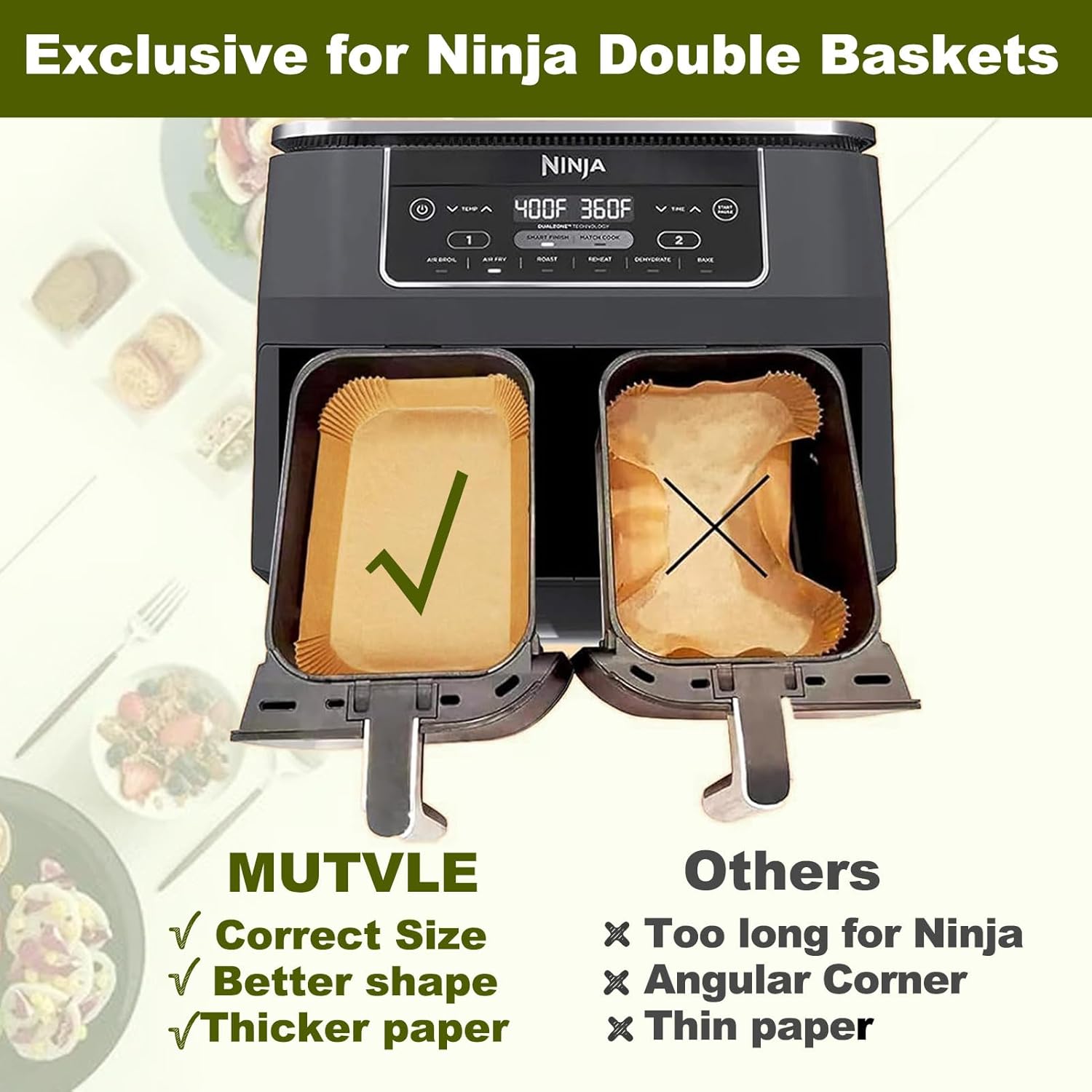 Air Fryer Liners for Ninja Dual, Air Fryer Parchment Paper Liners Disposable for Ninja DZ201, Ninja Foodi Liners, Disposable Ninja Dual Rectangular, AirFryer Paper Liners Rectangle Accessories Ninja