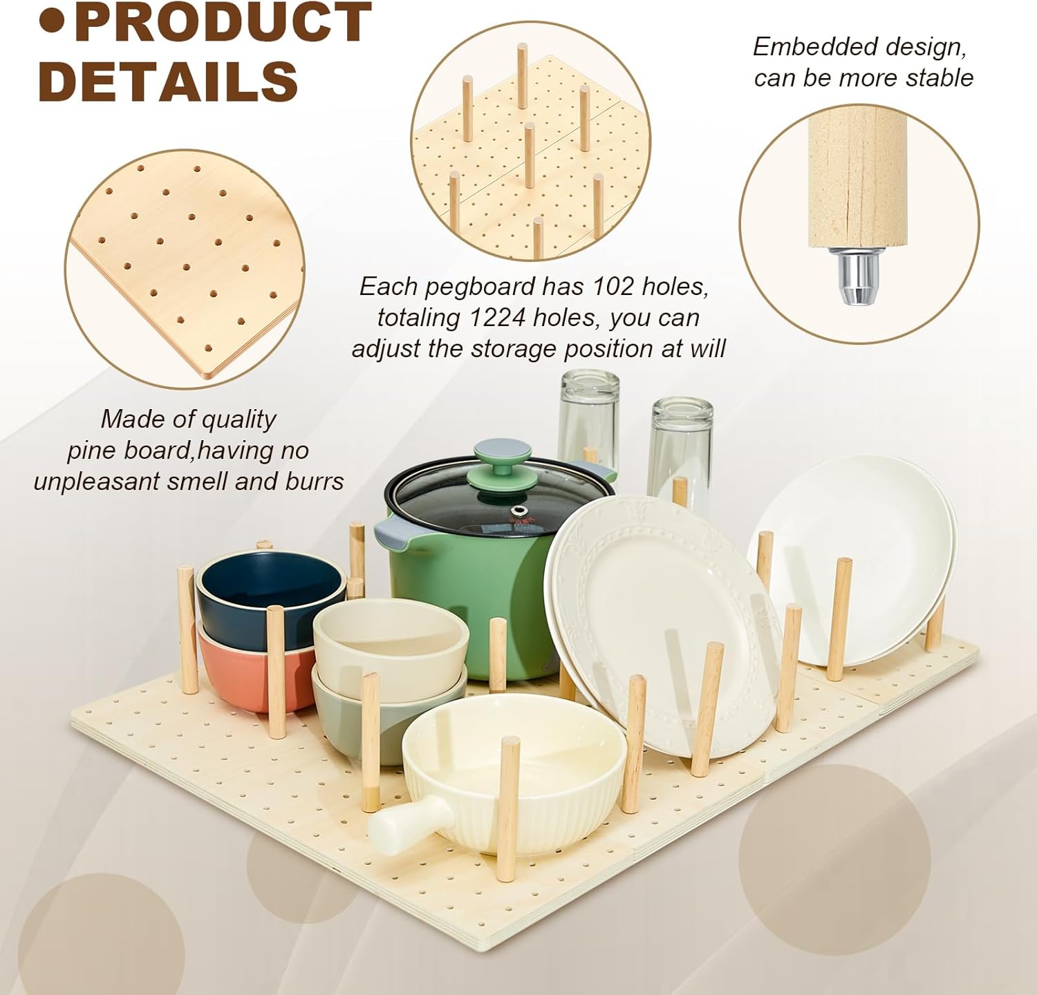 - Quality Material: the peg board drawer organizer is made from reliable wood, which is sturdy, and not prone to breakage and deformation; The product presents no unpleasant smell or burrs, ensuring your kitchen accessories are safe and reliable; It's advisable to keep the wooden peg board at a distance from water to avoid mold growth