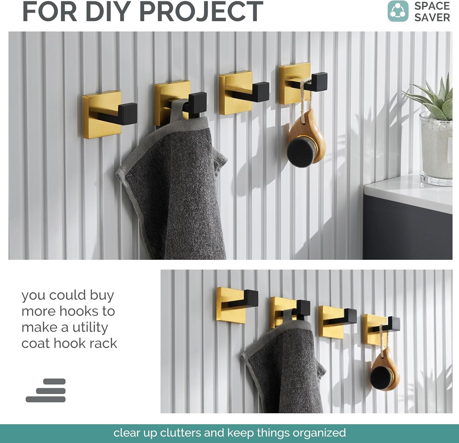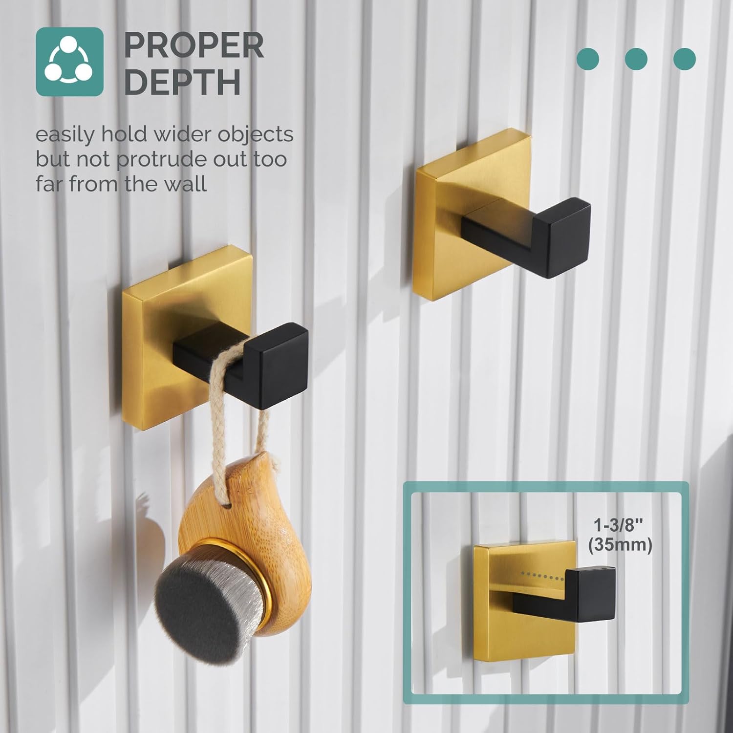 Angle Simple Towel Hook Black & Gold 2 Pack, 304 Stainless Steel Coat Hook, Robe Hook Bathroom