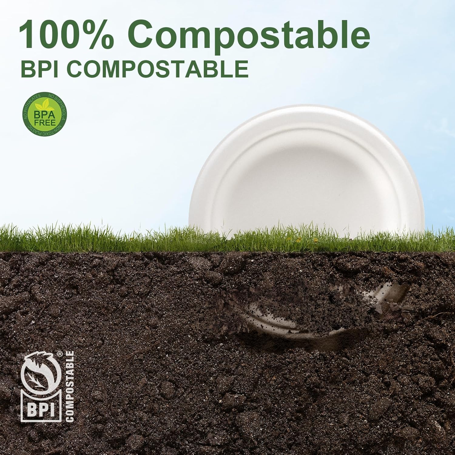- 【Versatile & Easy to Use】Whether you're hosting a picnic, party or any other event, these biodegradable paper plates are suitable for any hot or cold dish. Disposable paper plates are a great way to ensure quick and easy cleanup, you just throw them away after using and save time by not having to clean. Allowing you to focus on your day and have more time with family and friends making unforgettable memories.