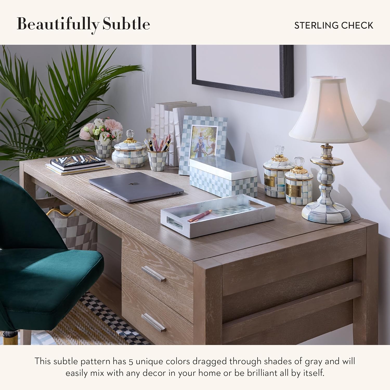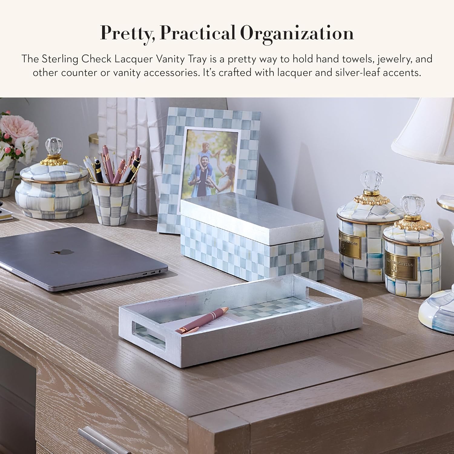 MACKENZIE-CHILDS Lacquer Vanity Tray with Handles, Rectangular Tray for Dresser and Home Decor, Gray-and-White Sterling Check