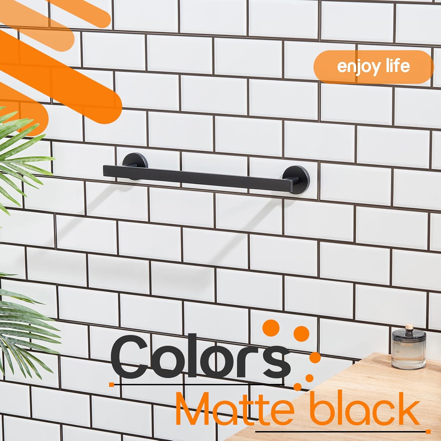 12 Inch Bathroom Towel Bar Bath Towel Rack Kitchen Towel Holder Towel Ring Wall Mounted SUS304 Stainless Steel 2 Pack Matte Black AN4001MB-L12-P2