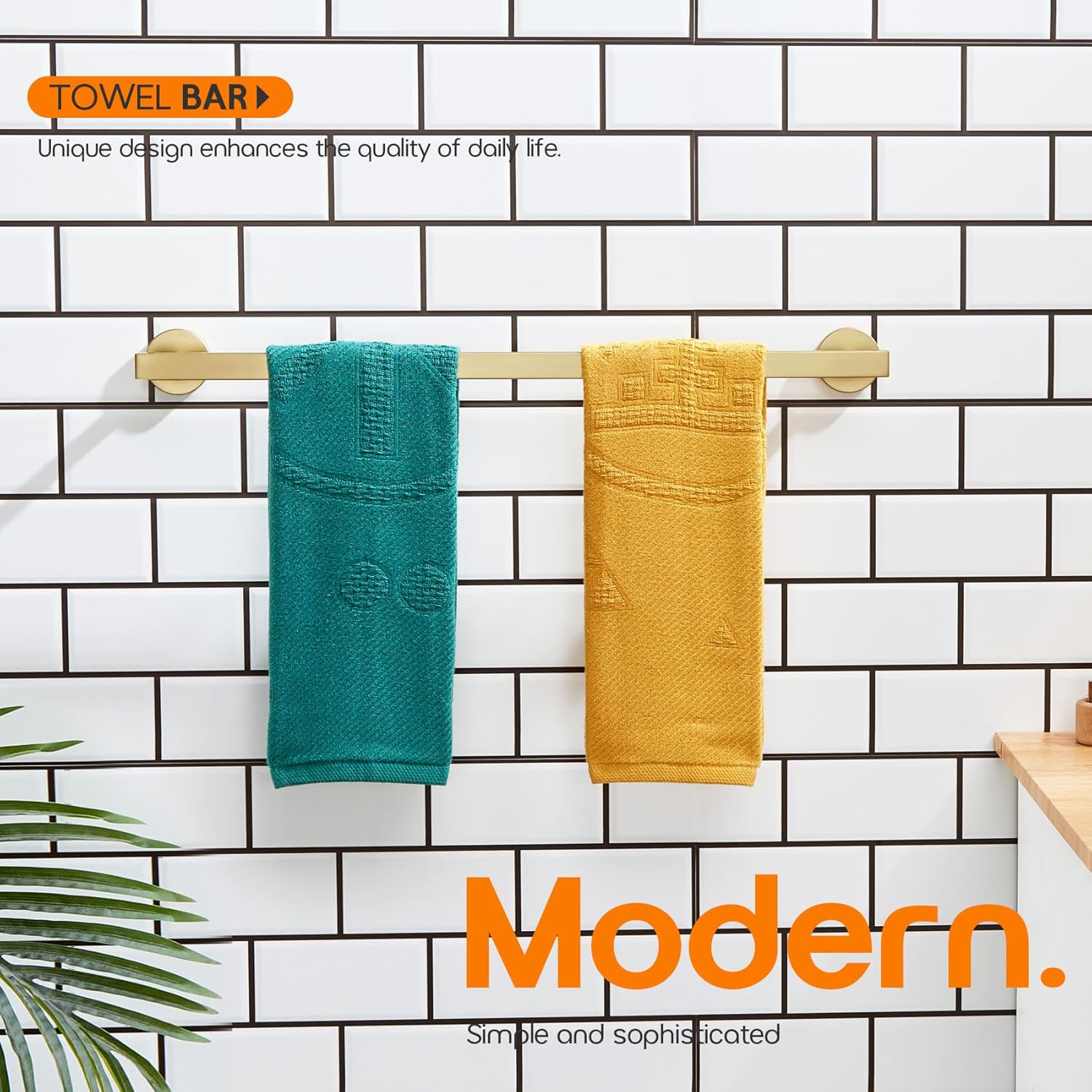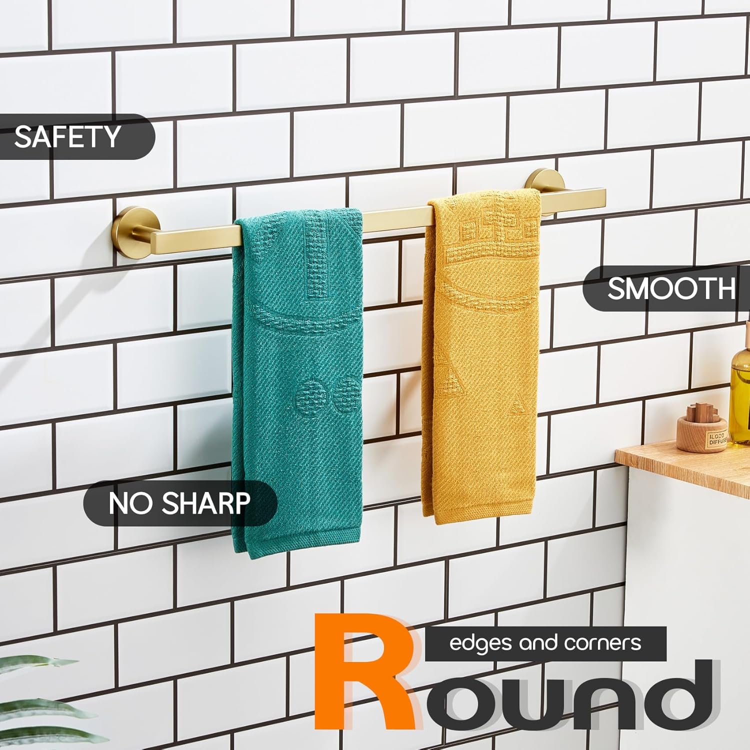 24 Inch Bathroom Towel Bar Bath Towel Rack Kitchen Towel Holder Towel Rails Wall Mounted SUS304 Stainless Steel 2 Pack Brushed Gold AN4001GD-L24-P2