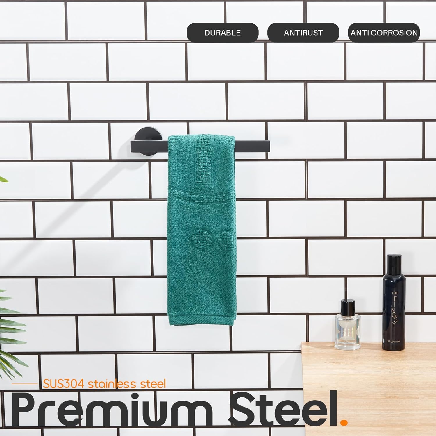 Hand Towel Rings Bathroom Towel Holder Modern Small Bath Towel Bars Stainless Steel Wall Mounted 2 Pack Matte Black AN3001MB-P2