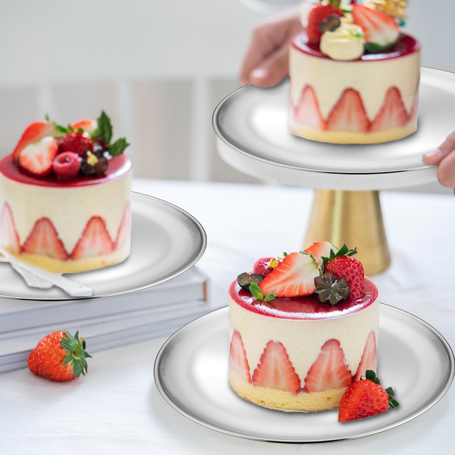 TeamFar Pizza Pan Set, 9 Inch Stainless Steel Round Pizza Trays, Metal Pizza Dish Plates for Oven Bakeware Baking Serving, Non-Toxic & Sturdy, Easy Clean & Dishwasher Safe, 3 PCS