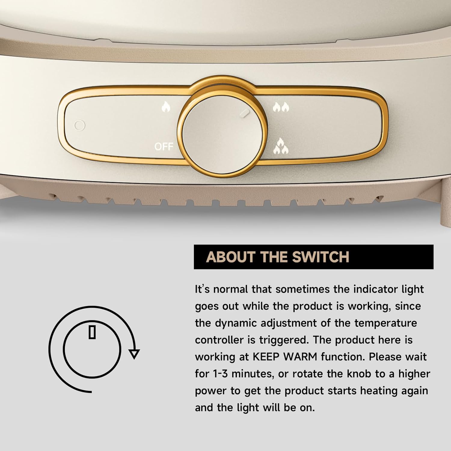 - Multi-Power Adjustment - In addition to functioning as a hot pot, this divided electric cooker offers three adjustable power settings, enabling you to simmer, slow-cook, stir-fry, and steam. It has a maximum power control of 1500W, while its double tube design ensures rapid, even heating throughout the electric pot. This hot pot with divider also provides convenience and flexibility for various cooking methods and delivers efficient heat distribution for quick and delicious meals.
