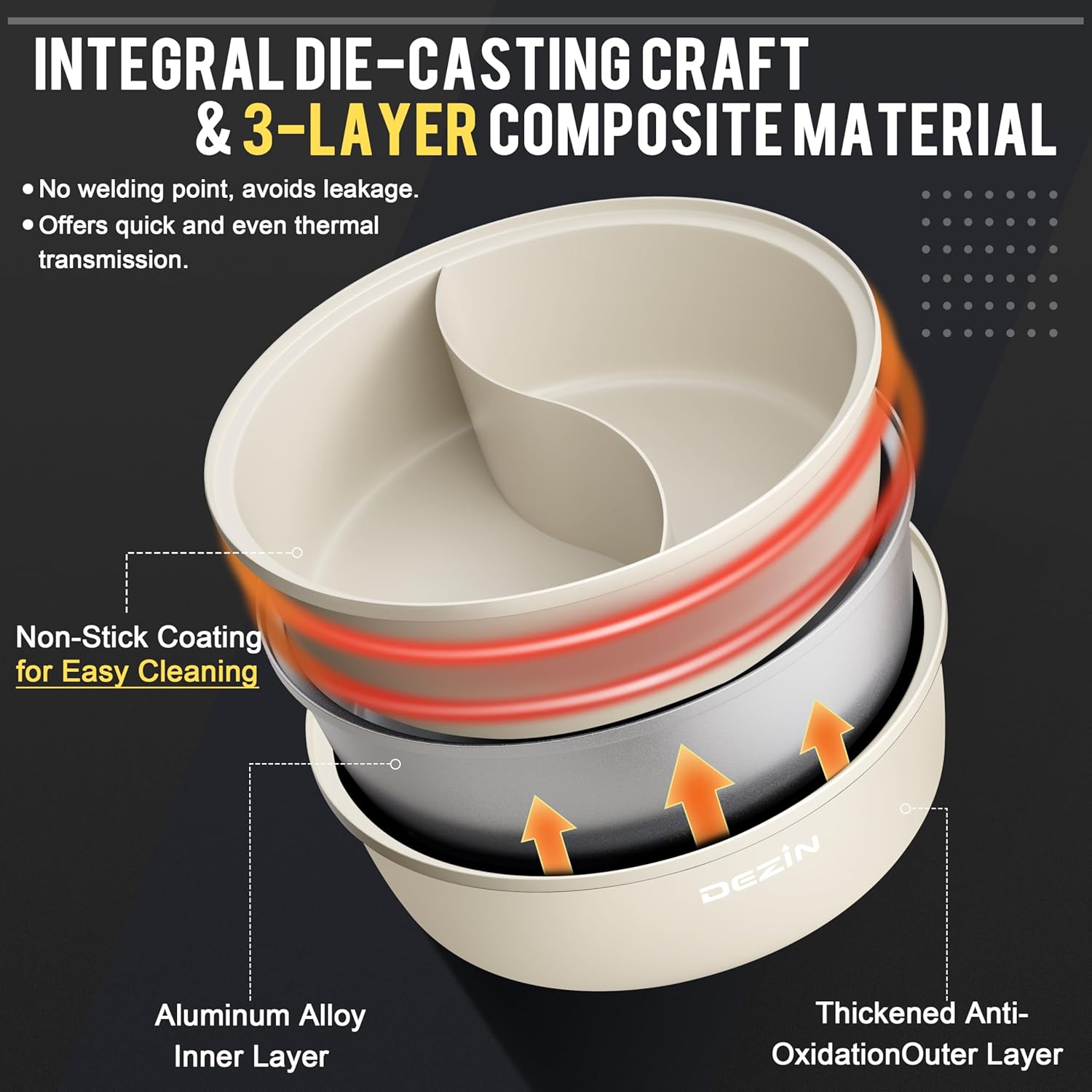 - Non-Stick Coating - The Dezin electric hotpot pot features a high-quality non-stick coating, providing excellent food release and easy cleaning. With this coating, you can enjoy cooking without worrying about food sticking to the pot. It also enhances stir-frying, making your cooking experience smooth and enjoyable.