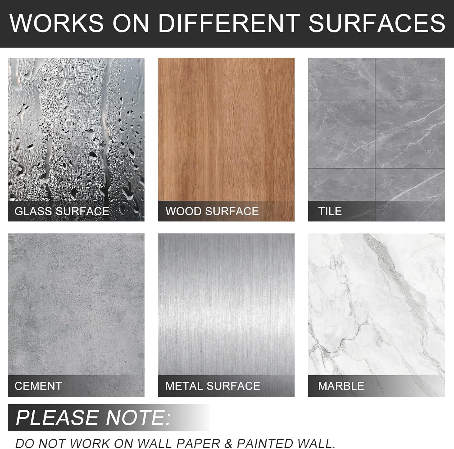 - Surface Compatibility: Wall Hooks mount securely on smooth surfaces like tile, glass, metal, wood, & marble. Avoid painted walls, wallpaper, limestone, & uneven textures.