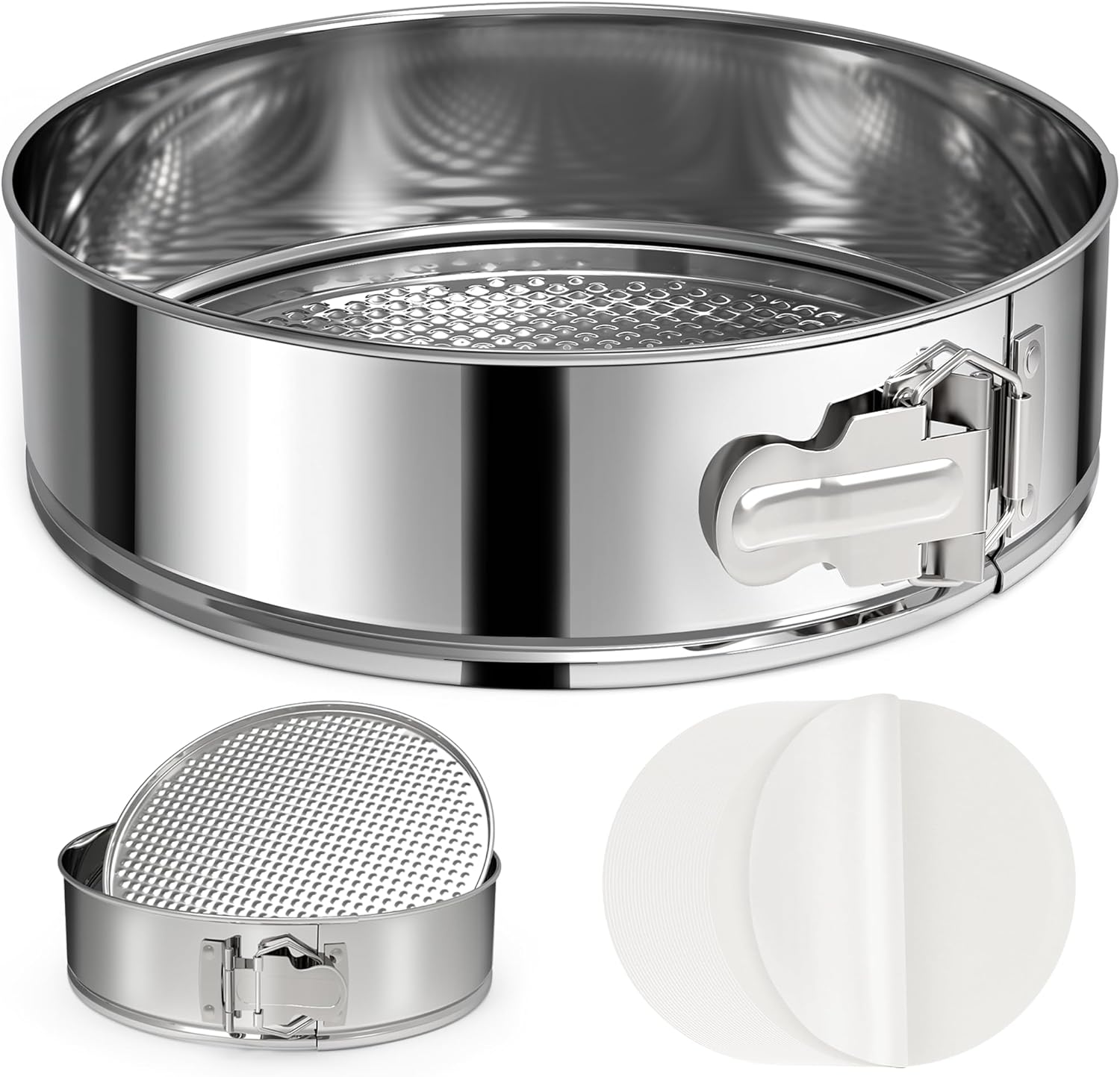 7 Inch 304 Stainless Steel Springform Pan with Removable Bottom, Nonstick Round Spring Form Cheesecake Pan with 30 Pcs Parchment Paper Liners