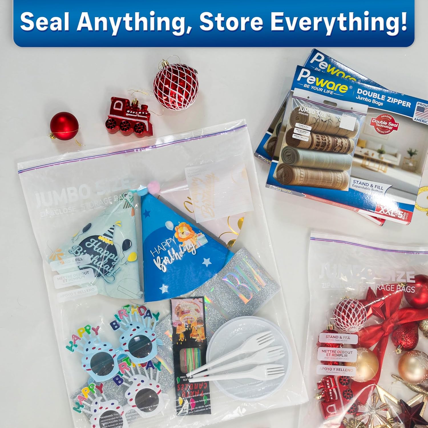 - EXTRA LARGE 16X20 INCHES SIZE: Perfect for storing bulky items like blankets, pillows, or large batches of food. With a 3-gallon capacity, these bags are the ultimate solution for heavy-duty storage needs.