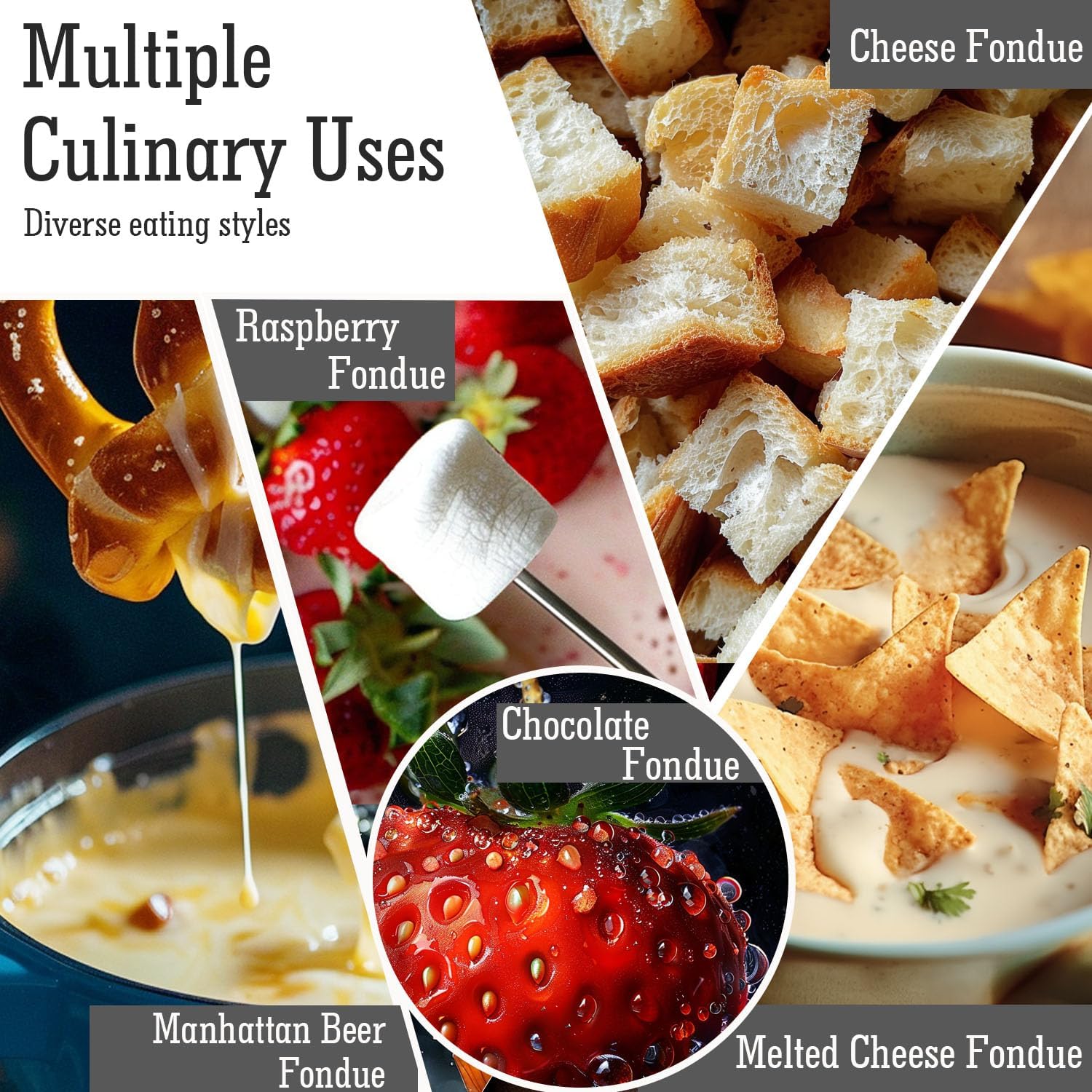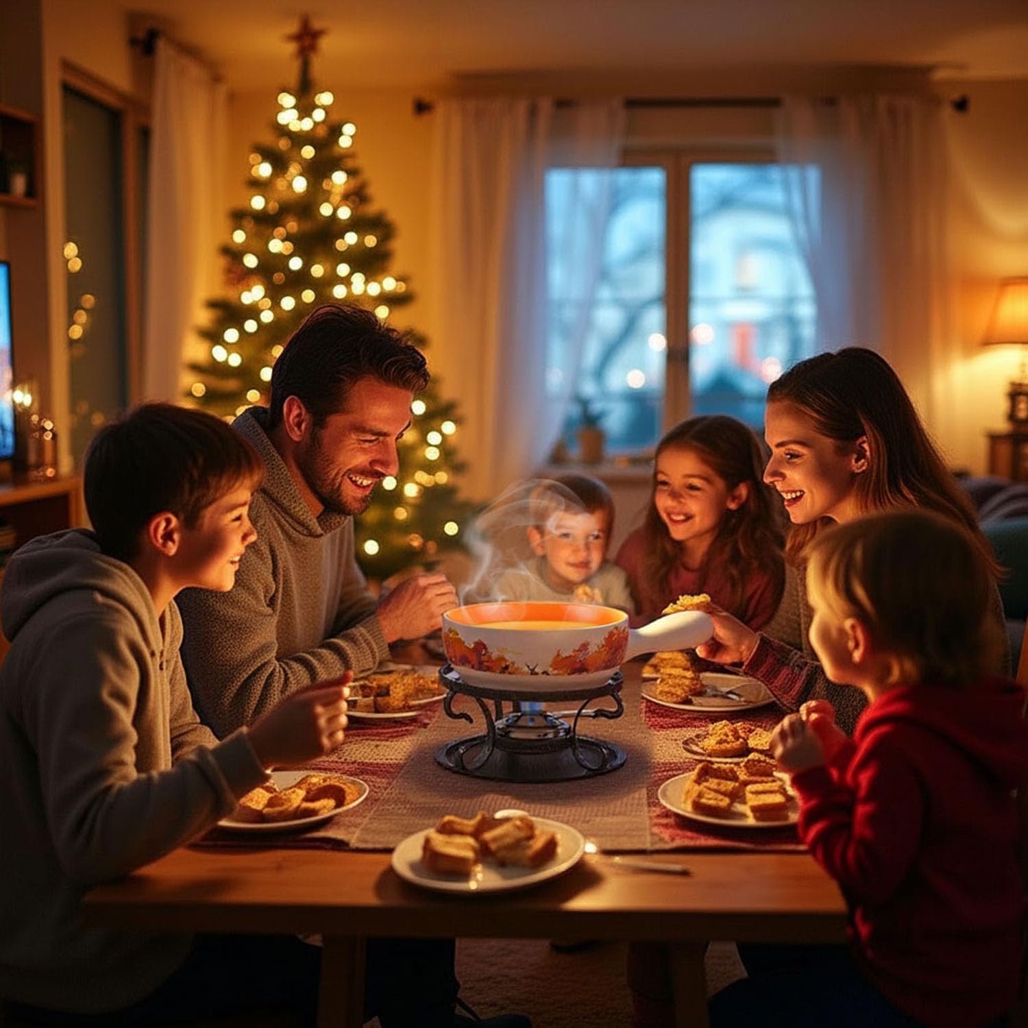 - IDEAL FONDUE with FAMILY - Perfect for gatherings, date nights, or family celebrations, this fondue pot combines style and functionality to create a delightful culinary adventure. Enjoy perfectly melted cheese, chocolate, broth, or oil fondue with your favorite fixings. Perfect for sharing, this set comes with six color-coded fondue forks so you know which is yours.