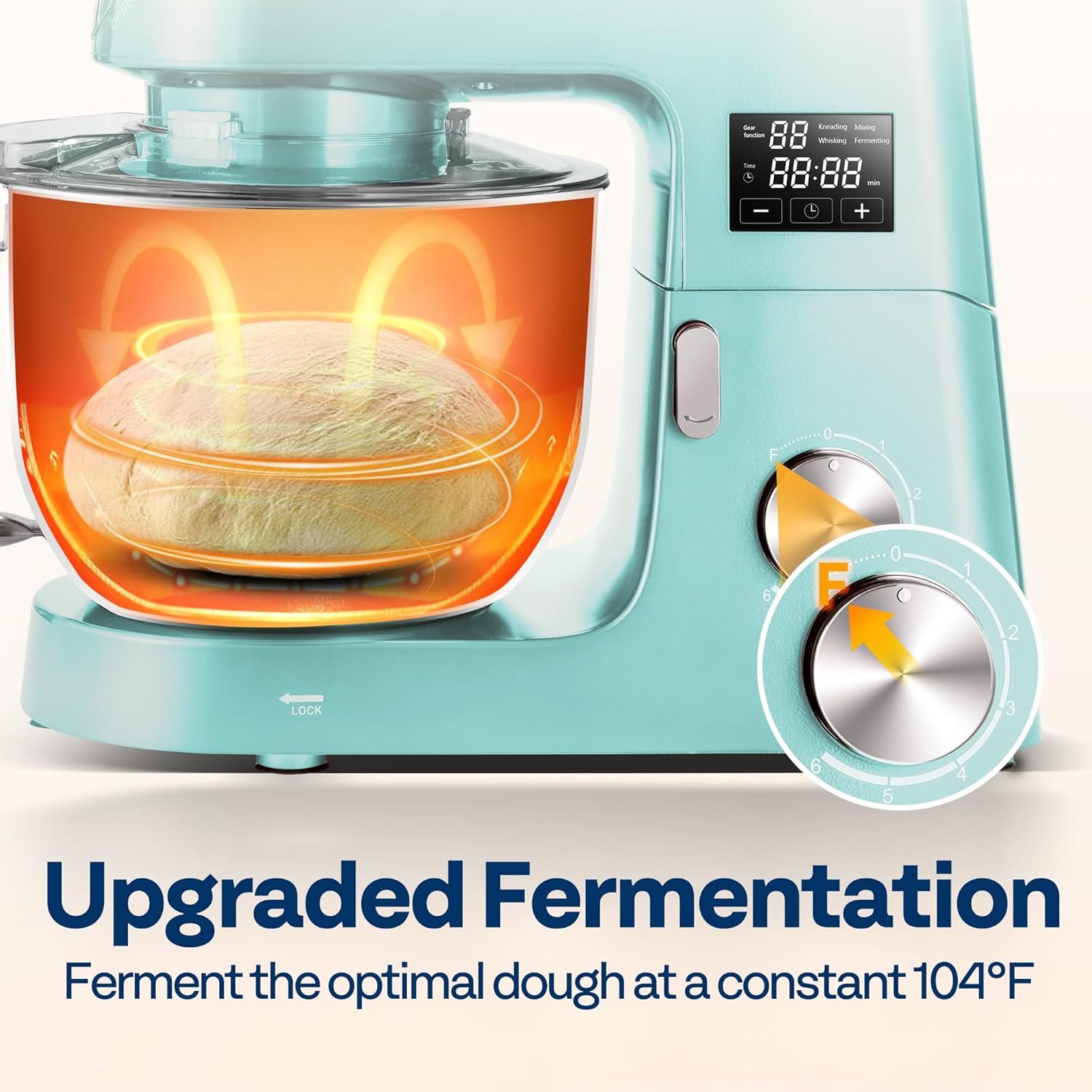 - 6 SPEEDS & FERMENTATION MODE: Choose from six precise speeds or use the upgraded F setting for fermentation, perfect for making dough rise at the ideal temperature; Its 360Β° planetary mixing design ensures that the attachments make even contact with the ingredients in the bowl, mixing them thoroughly and evenly, resulting in better-tasting food for a variety of recipes