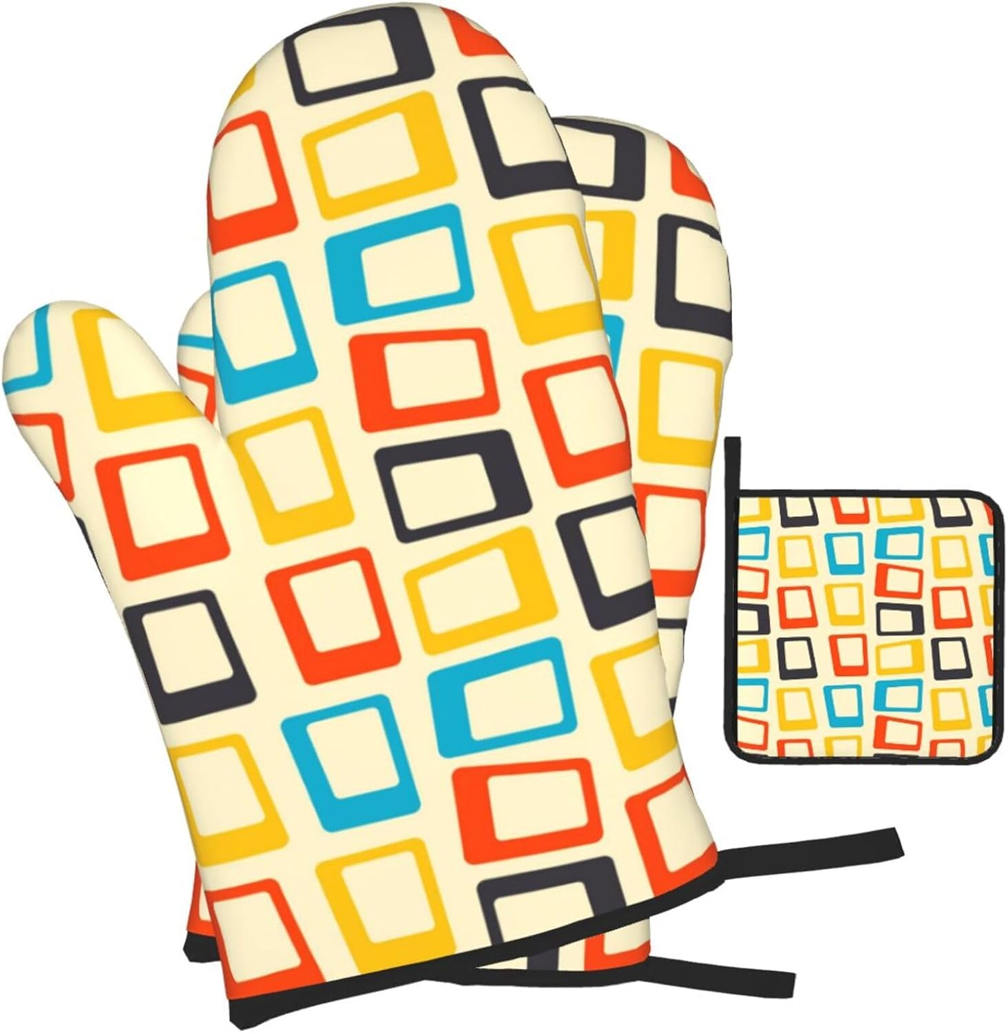 Mid Century Modern Oven Mitts and Pot Holders Sets of 3 Retro Heat Resistant Non Slip BBQ Gloves for Cooking Grilling Baking Kitchen Decor