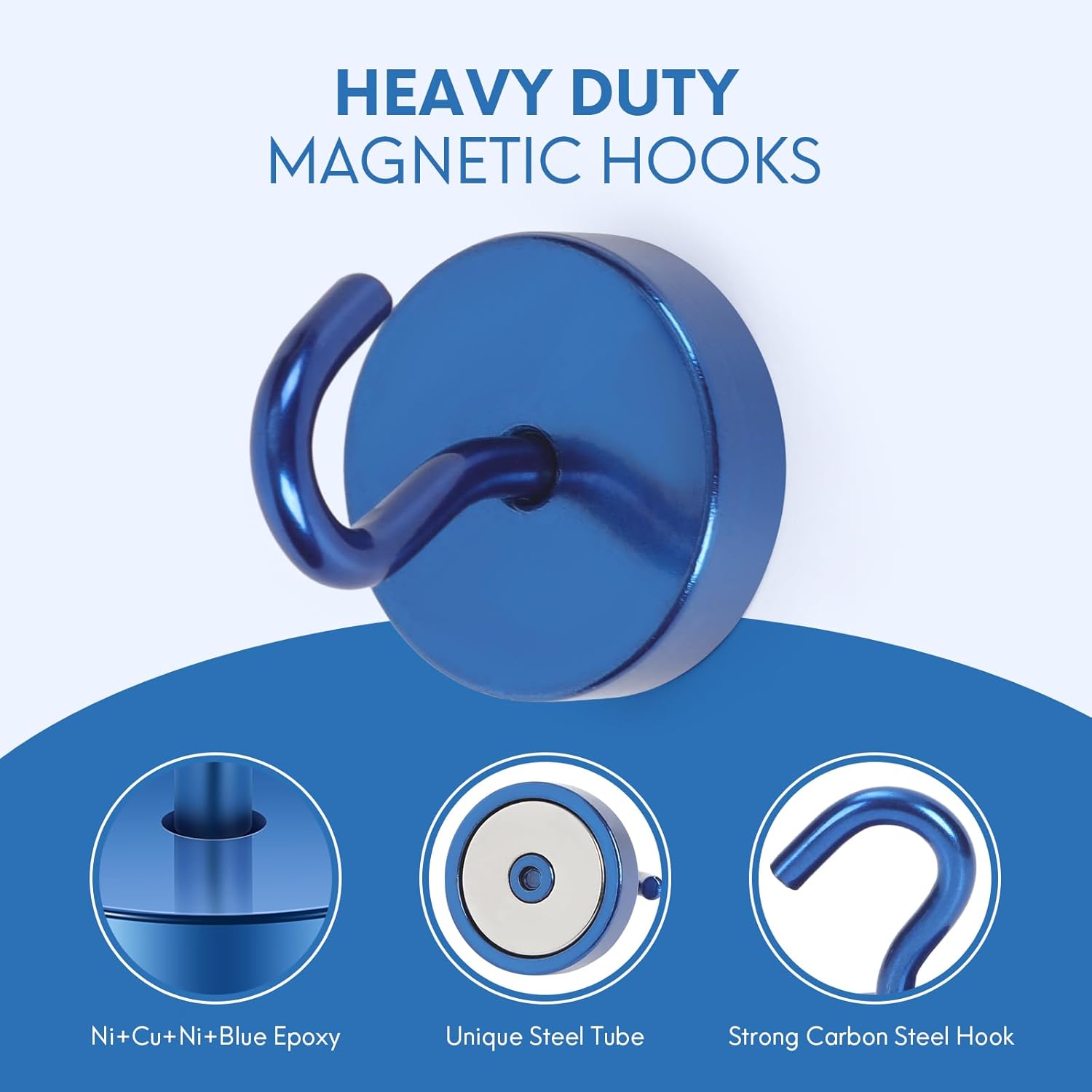 - ✔MAGIC STEEL TUBE DESIGN - Unique design of steel tube inside the base of magnetic hooks greatly increases the attractive force , especially on thin steel! It increase approximately 20% force comparing those none-tube magnets. it solves the problem of weak force on thin steel. Permanent magnetic hook with magic steel tube, strong magnetism lasts forever!