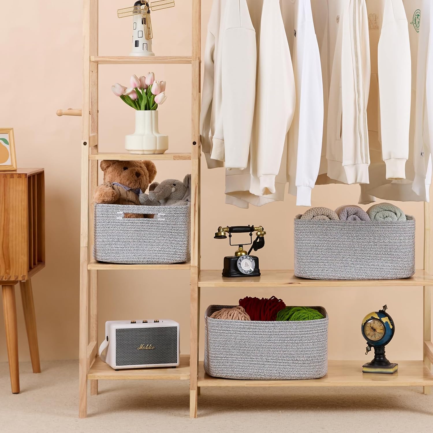 Large Storage Baskets for Shelves, Closet Organizers Bins for Clothes Blanket Towels, Baby Nursery, Toy Baskets Box, Woven Rope Baskets, 17 x 13 x 7.5”, 3 Packs Mixed Grey