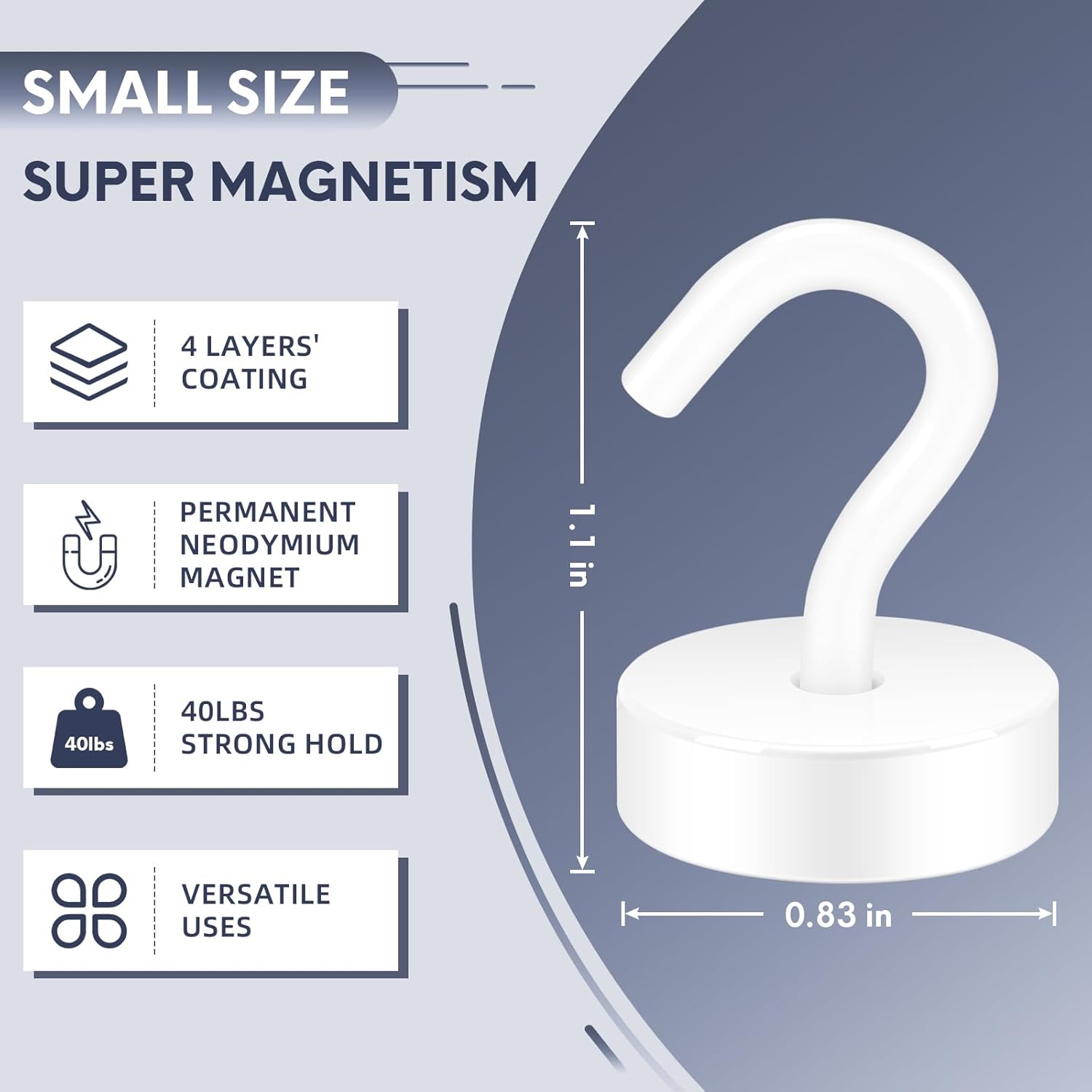 - ✔ VERSATILE USE- Neosmuk’s strong neodymium magnetic hooks were endowed with a strong capability for holding various items wherever there is iron or steel. This magnet hook is a perfect magnetic key holder. You can also hang your tools next to the toolbox with this magnetic hook. Our magnetic hooks are great for grill, pot, cup, utensils, and oven.