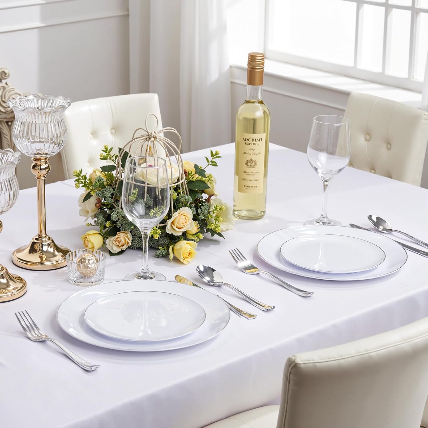 - Perfect for Occasion- Here comes the ultimate party essential! It's a perfect fit for family dinners, weddings, birthday bashesβ¦ all kinds of occasions! Serving guests with these white plastic plates with silver trim, the sense of ceremony and convenience go through the roof. (NOTE: Not for use in microwaves or dishwashers!)β