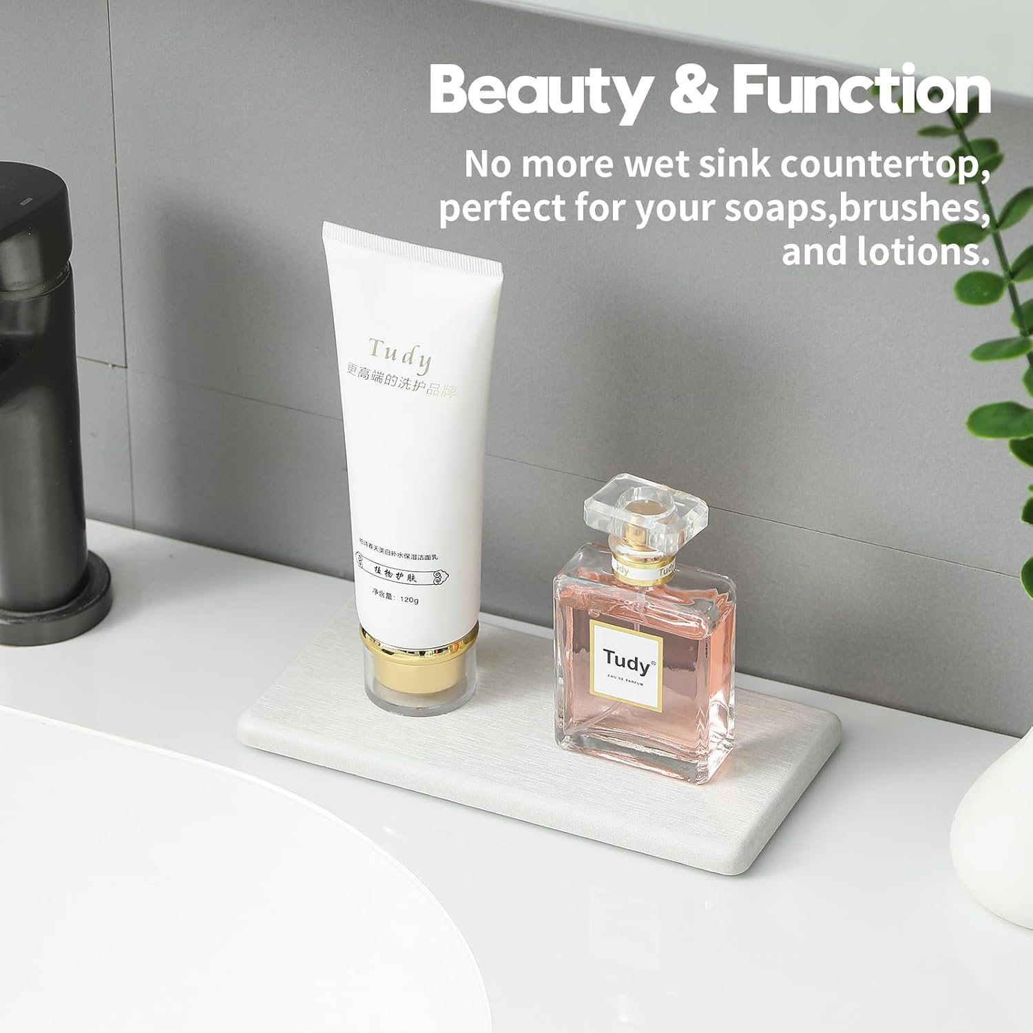 - 【Fast Dry Bathroom Sink Tray Organizer】Keep your kitchen and bathroom countertops neatly arranged with this quick-drying stone sink caddy. This holder rack absorbs moisture quickly and is specially designed for your soaps, sponges, or brushes