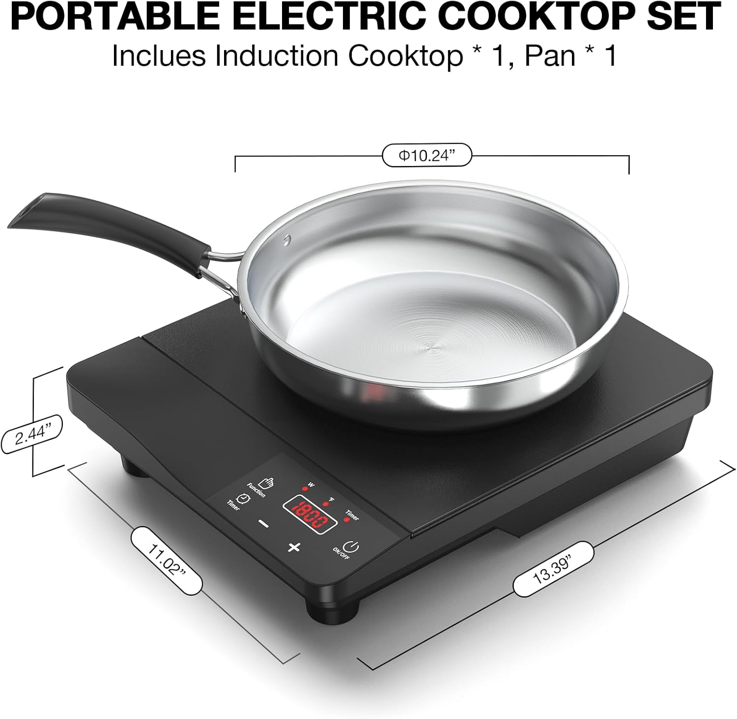 Induction Cooktop,1800W Portable Induction Burner & 10 Inch Fry Pan,110V-120V Hot Plate for Home, Electric Cooktop with 8 Power & 8 Temperature Levels,Timer