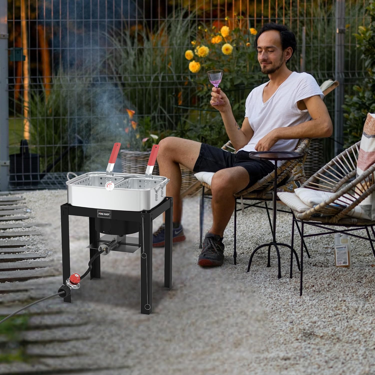 - PRECISION COOKING WITH THERMOMETER: Unlike standard fryers, the FireRiot deep fryer comes with a stainless-steel thermometer for accurate oil temperature readings. Achieve optimal frying conditions effortlessly, enhancing your cooking results and ensuring perfectly fried foods.