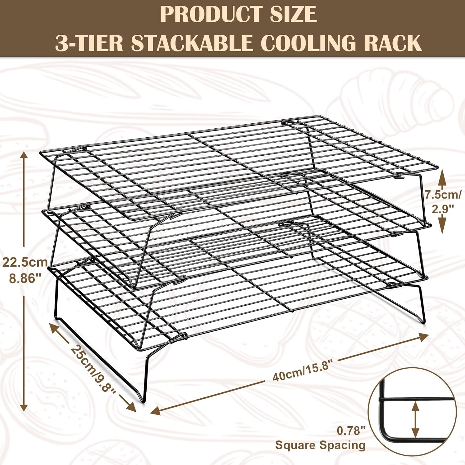 - 【MULTIPURPOSE COOLING RACKS】 This set of stacking cooling racks is perfect for cooling all kinds of pastries and baking all kinds of meats. It also helps to strain some of the grease after roasting meats. If you often enjoy baking and roasting, this 3-tier cooling high rack must be your best choice