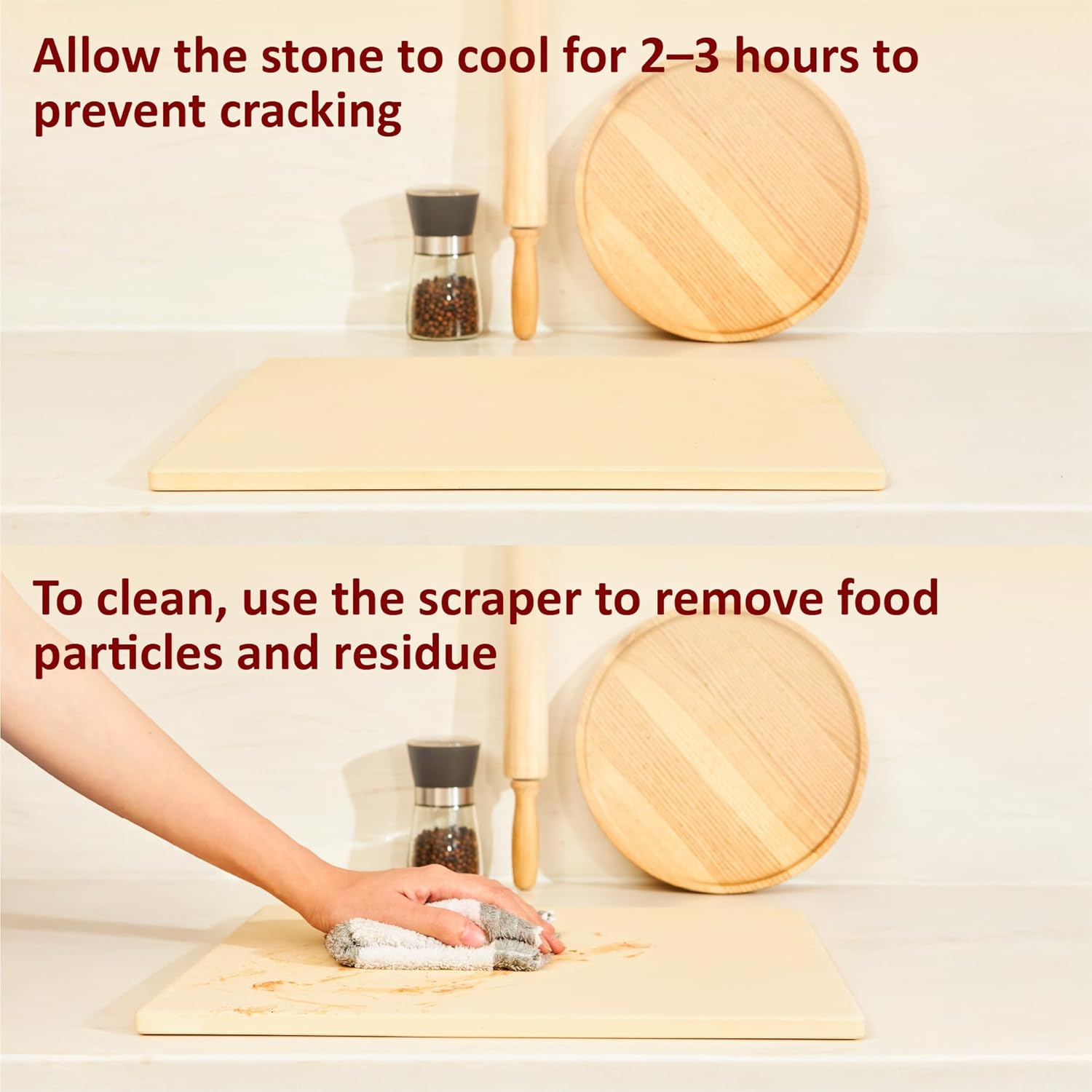 - EASY TO CLEAN & MAINTAIN – Hand wash with warm water only. Avoid soap and oil. To remove odors, scrub with a baking soda paste for a fresh, ready-to-use stone.