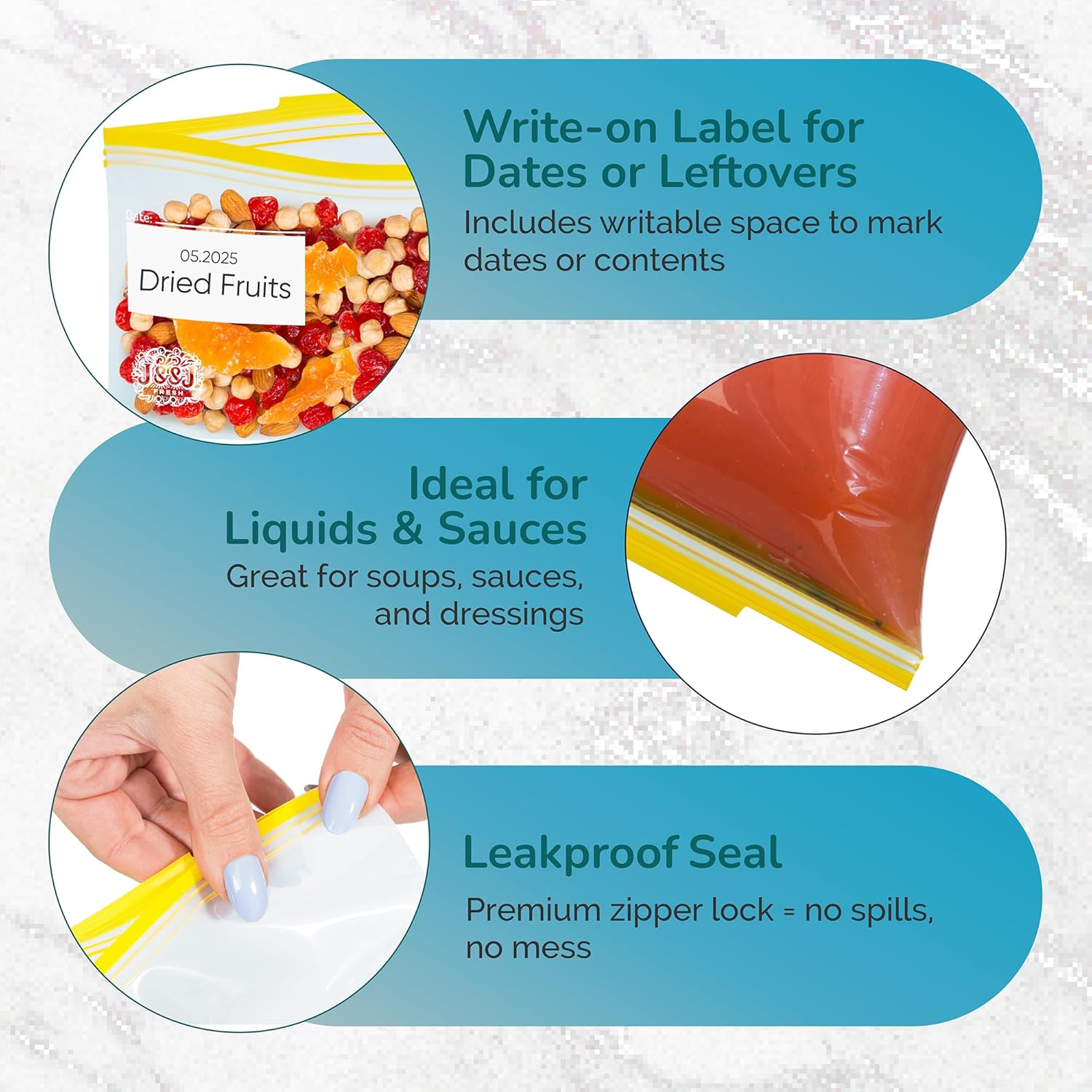 - 🔹 BPA-Free, Leakproof & Microwave-Safe — Made of food-grade, BPA-free plastic with an upgraded zipper lock that creates a strong seal to lock in freshness, prevent messy leaks, and handle microwave reheating safely