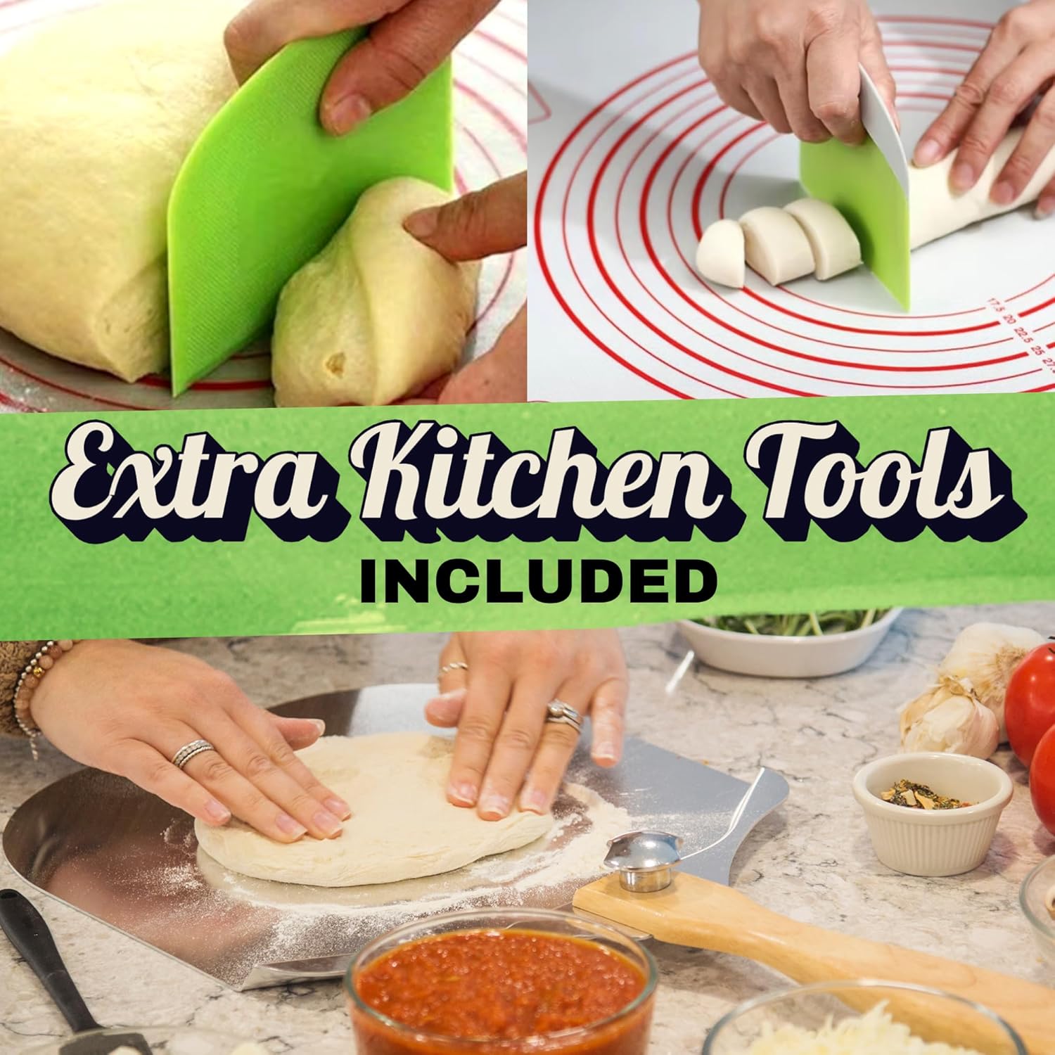 - UNIQUE FOODIE GIFT: Designed with gift giving in mind, our custom box presents the pizza gifts. Our pizza stone kit to make pizza at home contain a stone pizza pan, stainless steel peel with wooden handle, plastic dough cutter, metal handles for stone and e-recipe book. A gift that will bring many memorable moments.