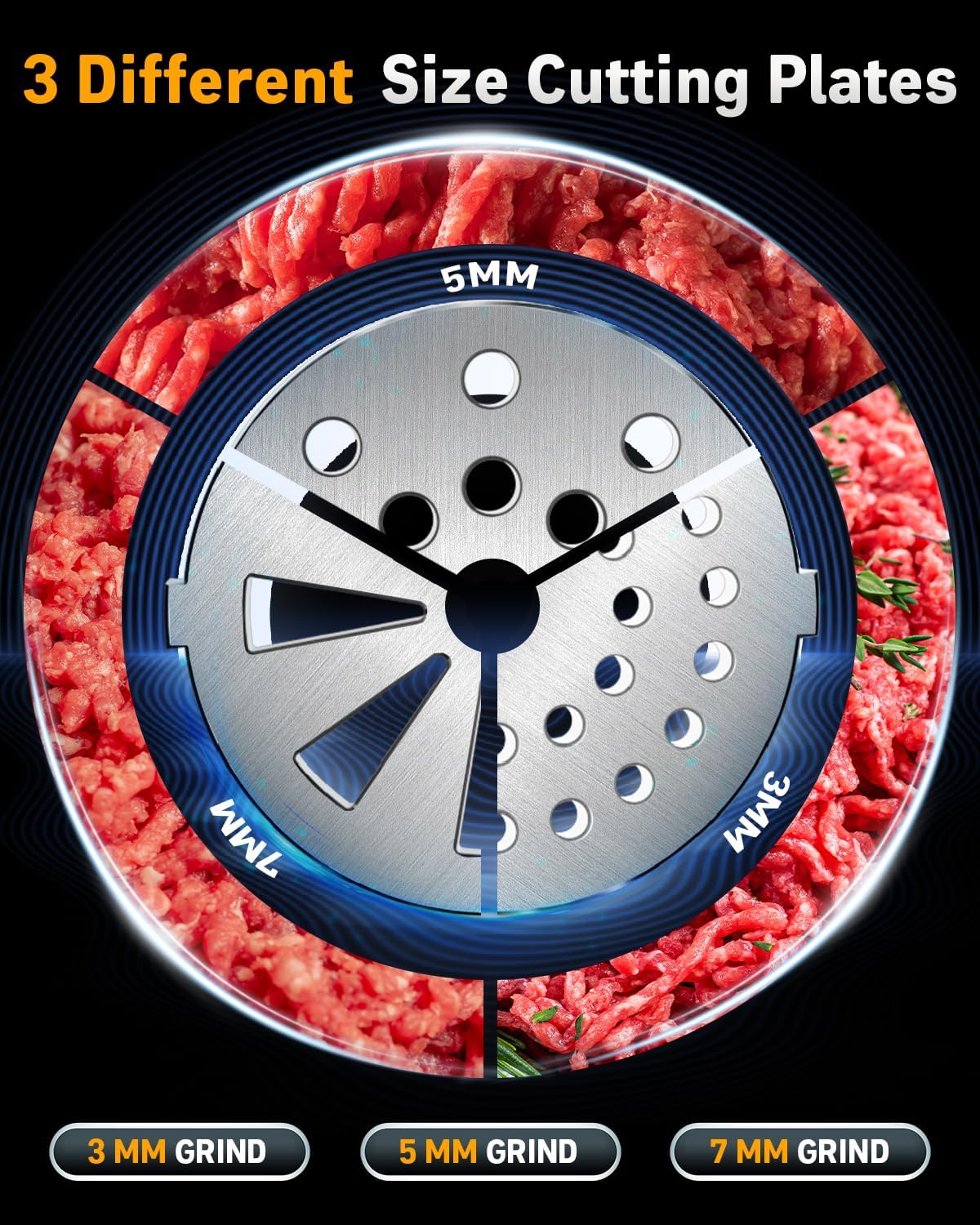 - 【FOOD GRADE PARTS】Crafted from premium food-grade materials, accessories of this electric meat grinder assure safety, corrosion resistance, easy cleaning, high temperature resistance, and durability. Using a meat grinder in conjunction with food-grade stainless steel components significantly extends its lifespan, up to 30%.