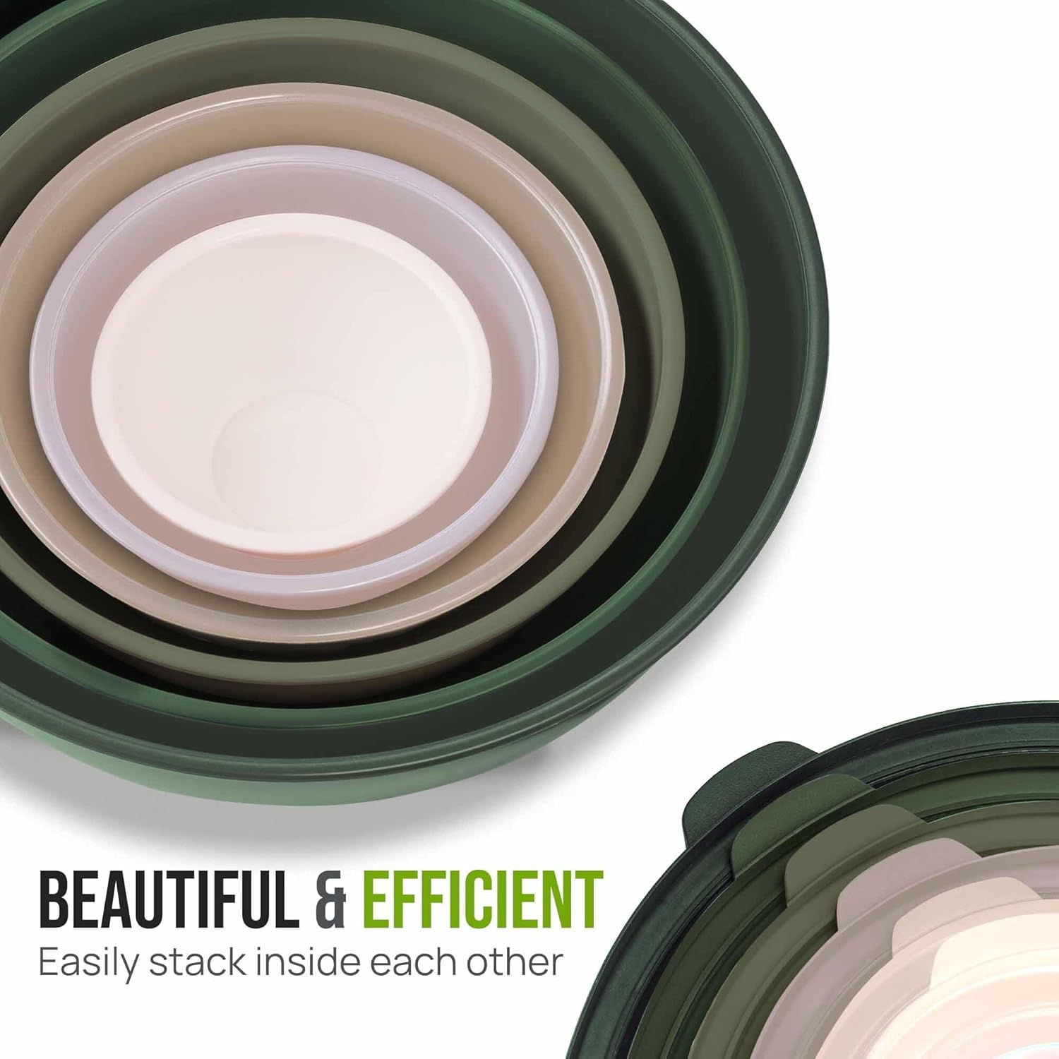 - STACKABLE, EASY TO CLEAN DESIGN: These nesting mixing bowls for kitchen can be stacked on top of each other to save space. The plastic bowls with lids are top-rack dishwasher friendly and can also be hand washed with soap and water (avoid the use of abrasive sponges).