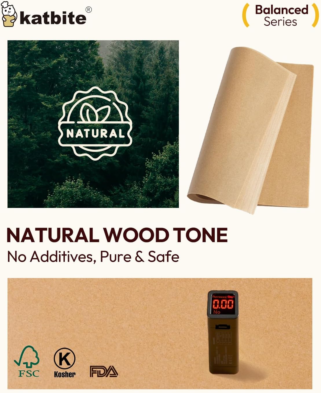 - 100% Natural & Additive-Free: Katbite 8 x 8 Inch Baking Paper is made with FSC-certified wood pulp, unbleached, free of fluorescent agents and harmful chemicals, non-toxic and BPA-free. Naturally presents a healthy wood color. Kosher-certified food-grade safety material, safe for direct food contact—whether baking, roasting, or steaming—allowing you and your family to enjoy meals with peace of mind.