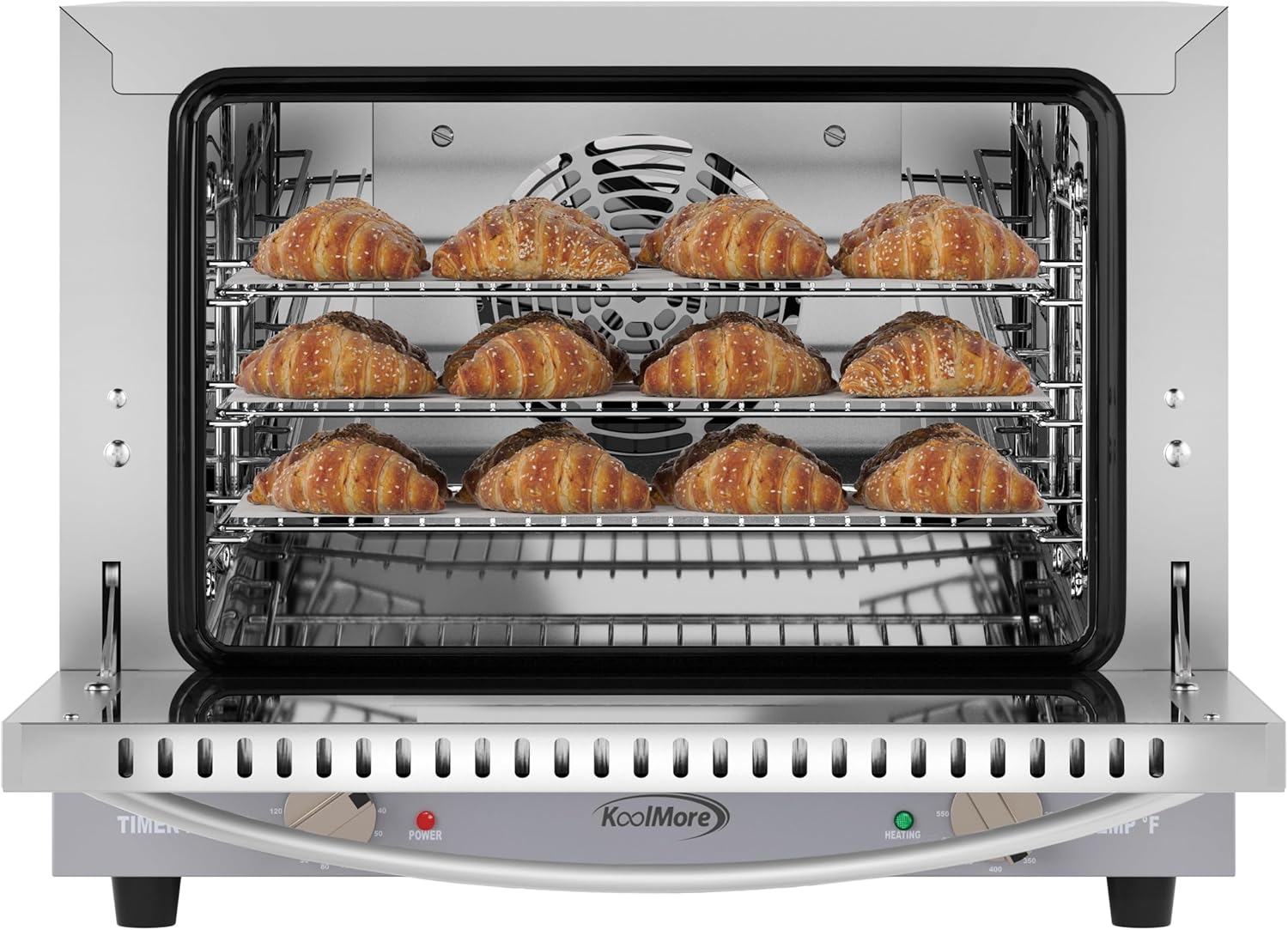 KoolMore 19 in. Countertop Convection Oven for Quarter-Size Pans with 3 Racks 1440W of Power in Stainless-Steel, 0.8 cu. ft. ETL Listed (KM-CTCO-08)