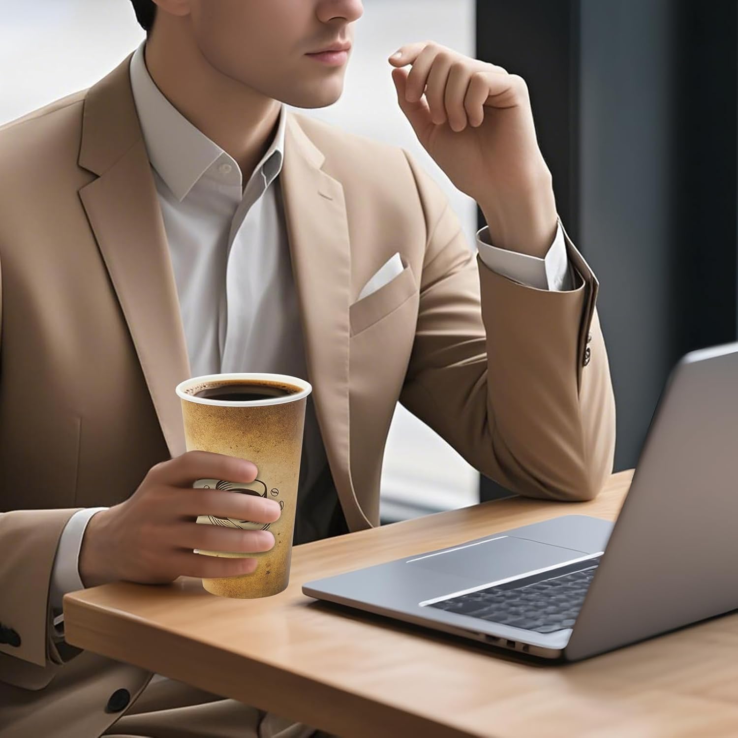 180 Pack 16 oz Disposable Paper Coffee Cups, Hot/Cold Drinking Cups, coffee, Juice, Retro Design, Leak-Proof, Party, Picnic, Events, Travel, Offices, Shops