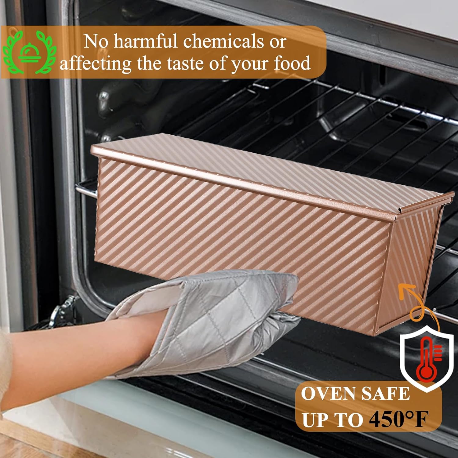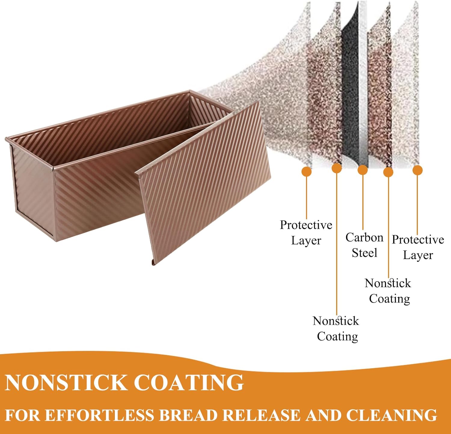 - PREMIUM NONSTCK & EASY CLEAN: Enhanced food-safe PTFE/PFOA-free nonstick coating ensures effortless bread release from bread pan with lid. It is perfect for baking sandwich bread, Japanese milk bread, gluten-free loaves, sourdough, and more.