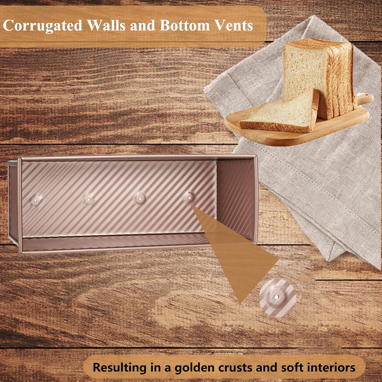 - BAKERY-PERFECT STEAM CONTROL: Snug-fitting lid creates uniform sandwich bread slices. Lid-off baking for rustic artisan loaves. Heat-distributing carbon steel + steam vents optimize crust development in bread loaf pans for baking.