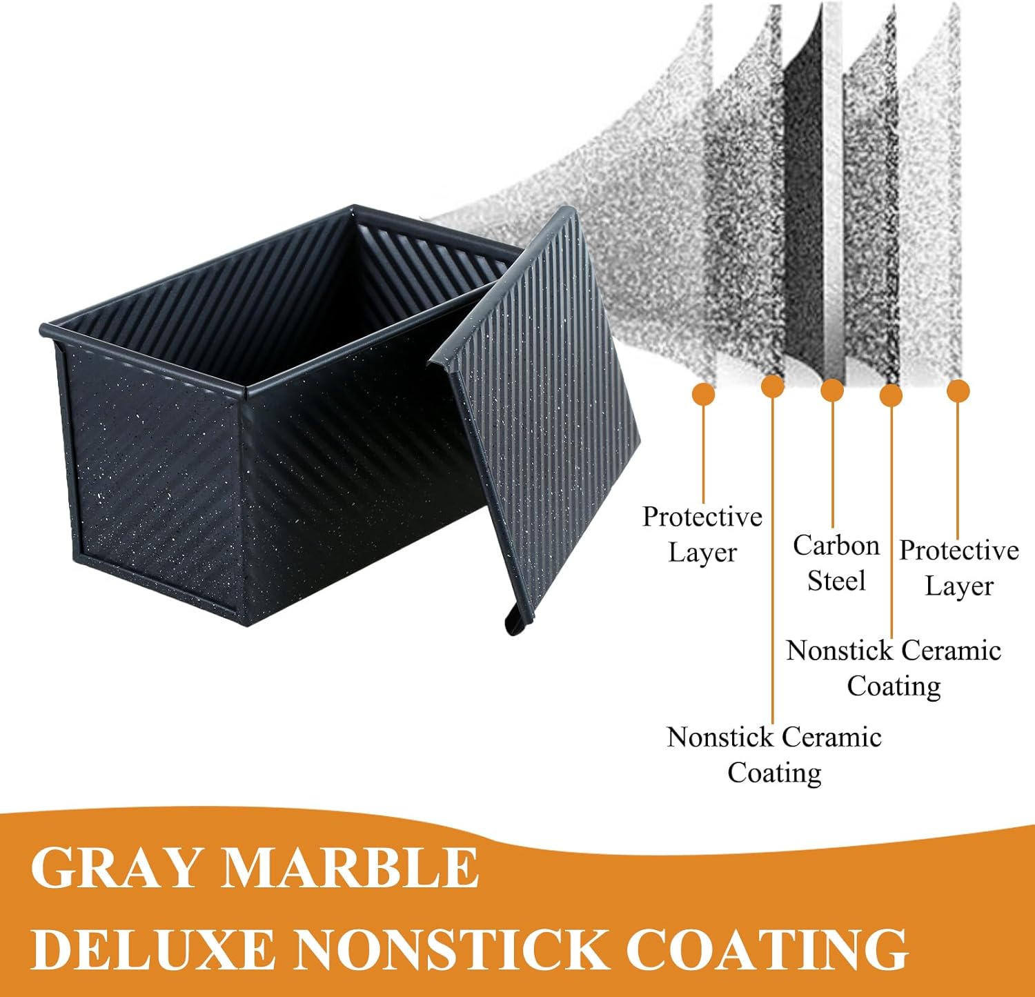 - PREMIUM NONSTCK & EASY CLEAN: Enhanced food-safe PTFE/PFOA-free nonstick coating ensures effortless bread release from bread pan with lid. It is perfect for baking sandwich bread, Japanese milk bread, gluten-free loaves, sourdough, and more.