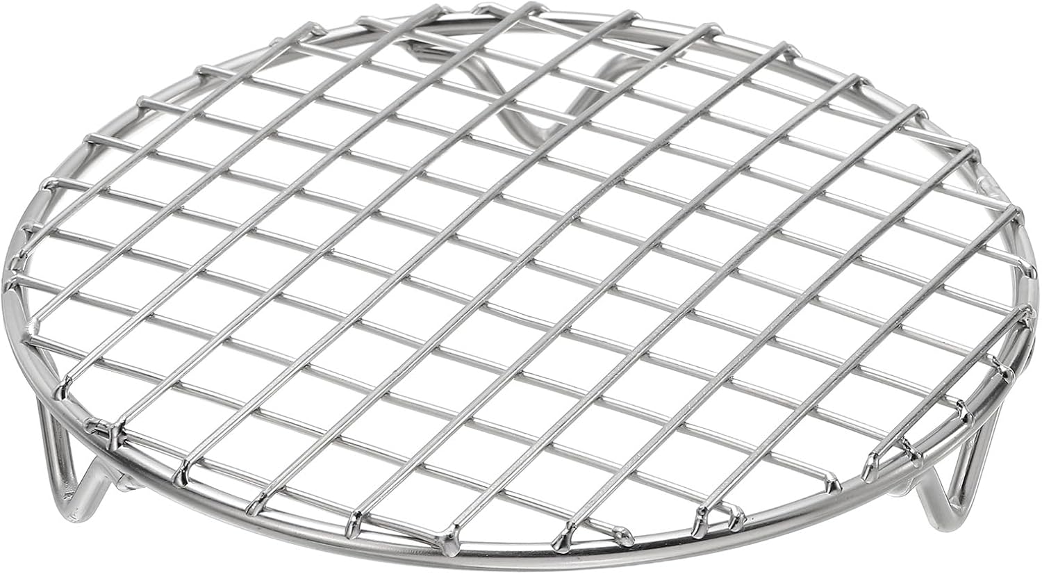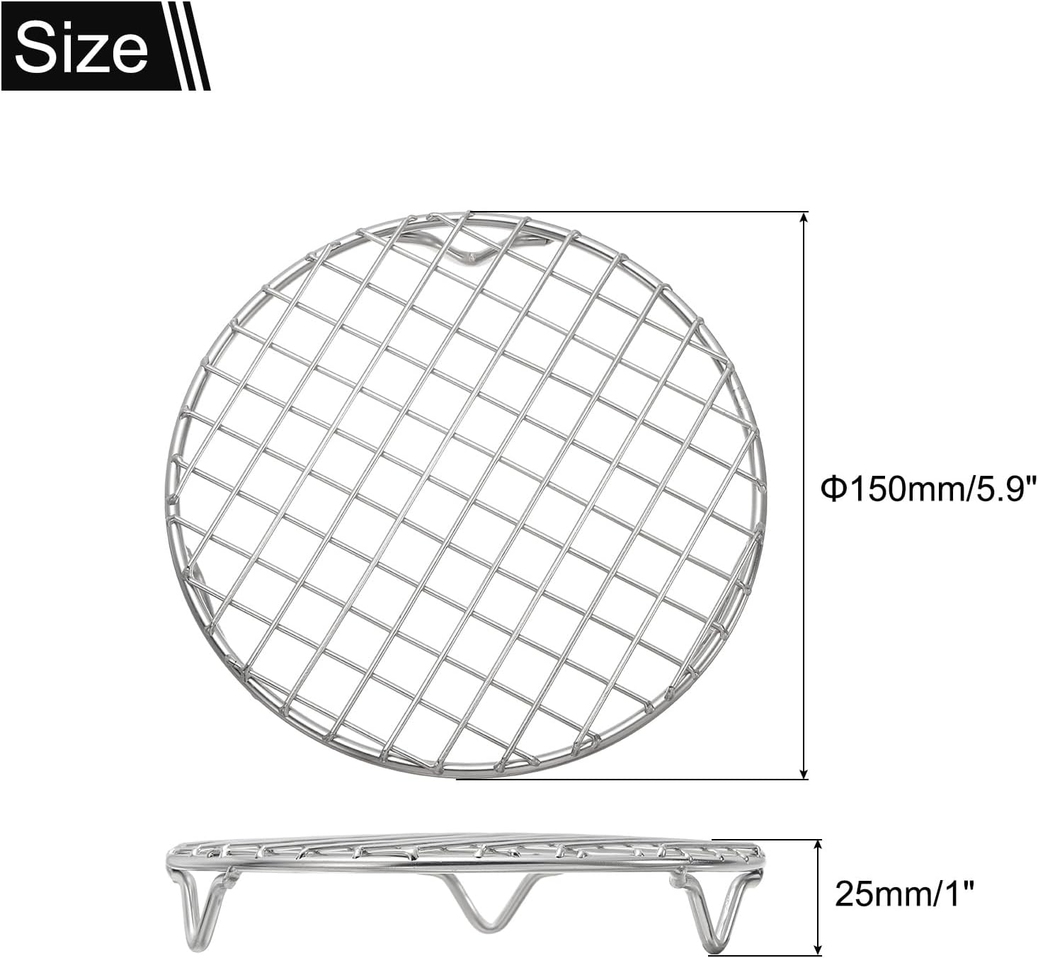 uxcell Round Cooking Rack with Legs, Dia 5.9 Inch 304 Stainless Steel Barbecue Grill for Cooking Baking Barbecue Air Fryer Racks, Silver